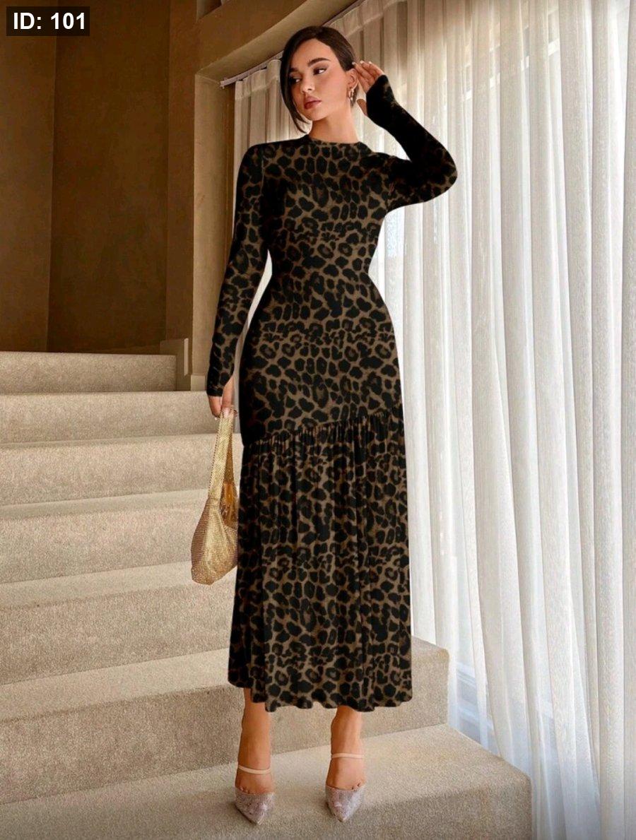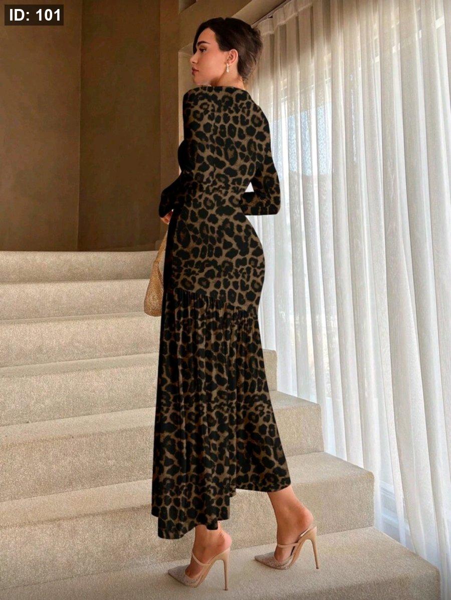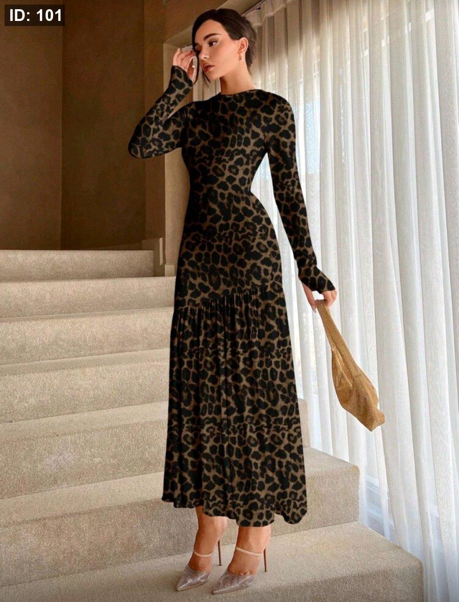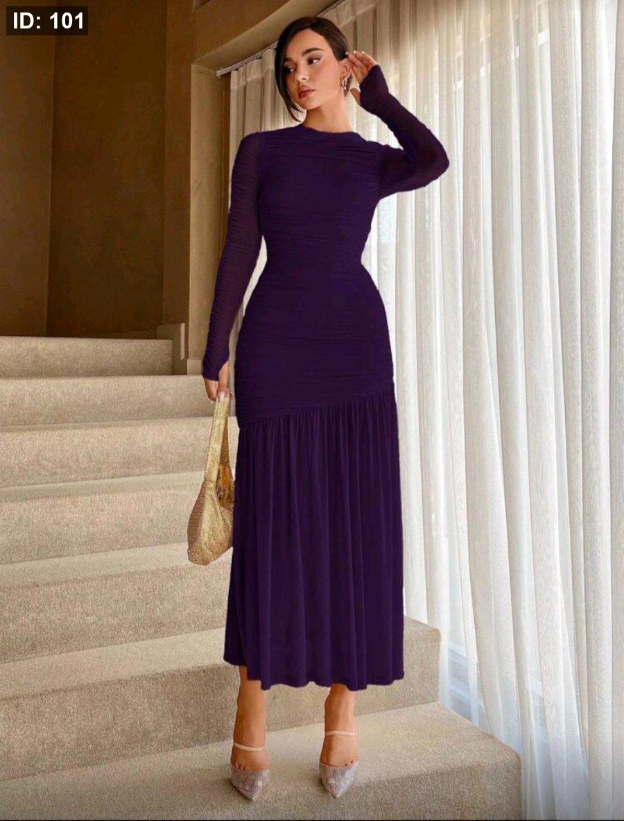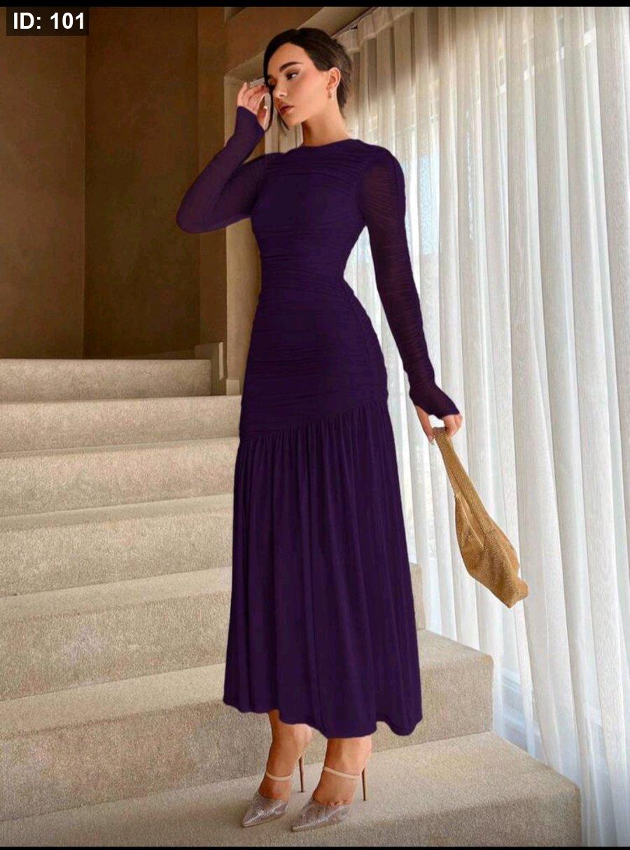 Aloruh فستان بقصة ذيل سمكة ورقبة دائرية بلون سادة