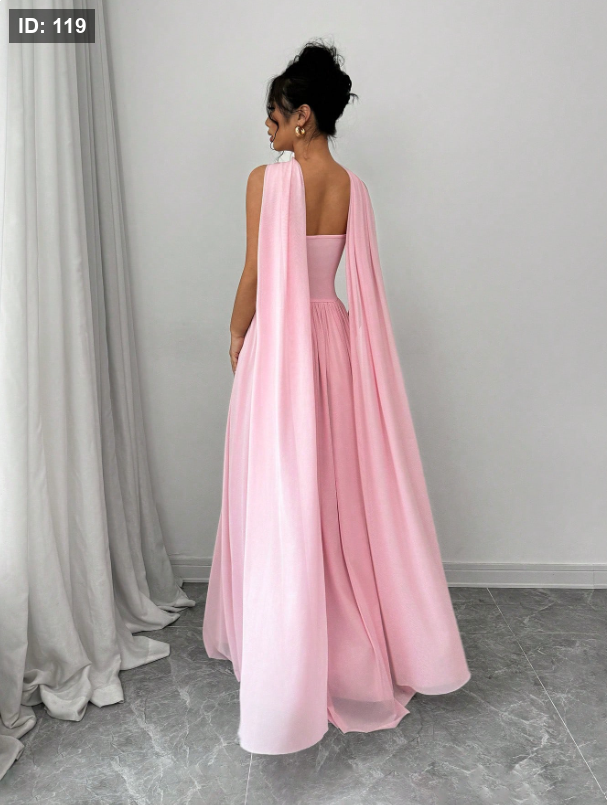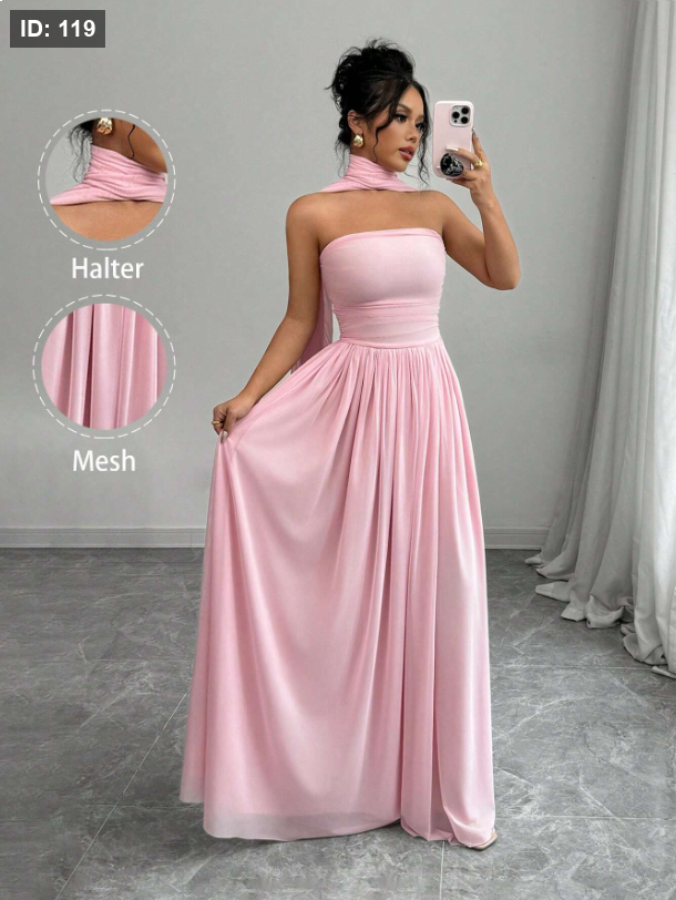 فستان طويل أنيق للنساء بقصة ماكسي بدون أكمام ولون واحد مع تفاصيل طيات، قطعة واحدة