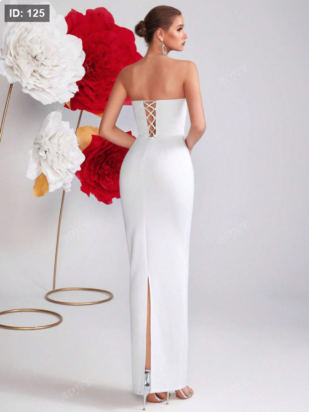 فستان كرة مرتفع الخصر بدون ظهر مزين بالراين ستون مع شق، مناسب لحفلات التخرج، الحفلات، السهرات،حفلات الزفاف، الحفلات الرسمية