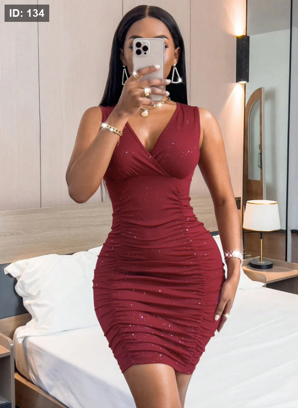 فستان ضيق مكشكش الياقة لملابس السنة الجديدة