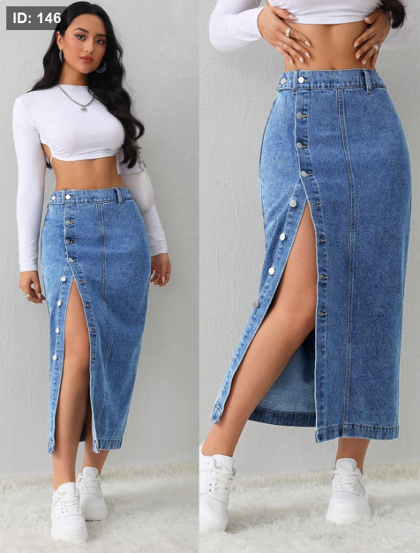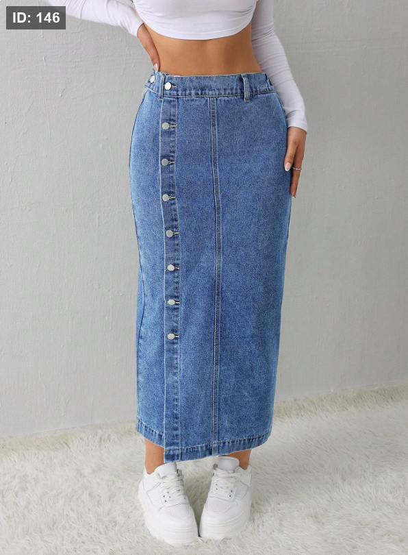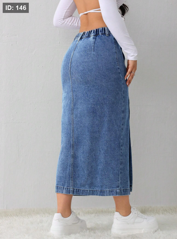 تنورة جينز نسائية كاجوال، فضفاضة، سبيط الجانب، تنورة متوسطة اللون الأزرق الفاتح