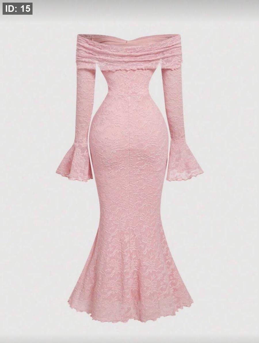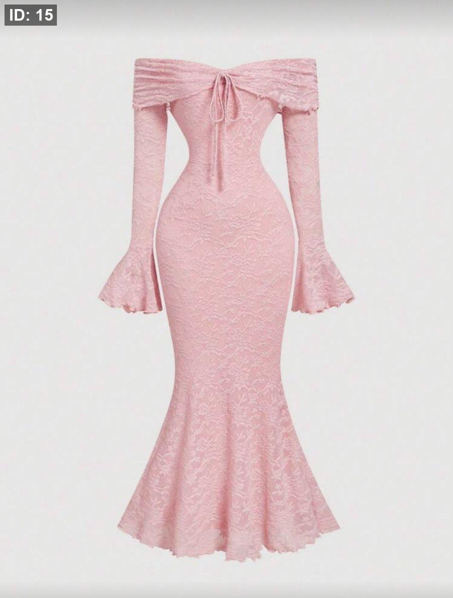 SHEIN MOD فستان ضيق ذو كتف مكشوف بأكمام طويلة وعقدة على الأمام للنساء