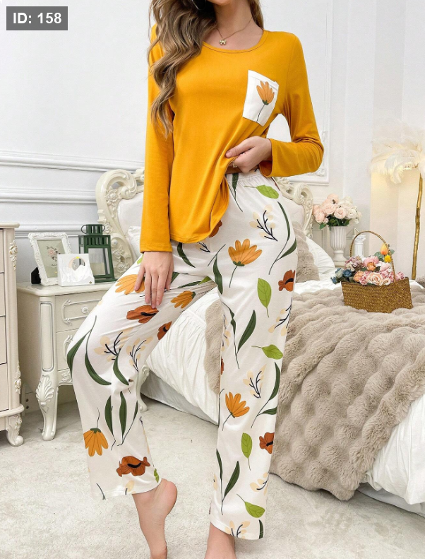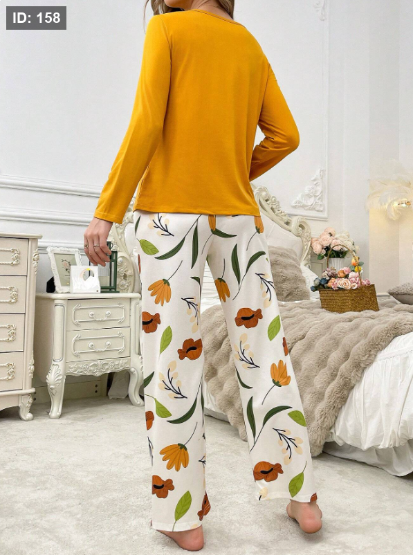 بيجامة مكونة من ملابس علوية كم طويل مطبوعة وبنطلون مطبوع، ملابس خريفية