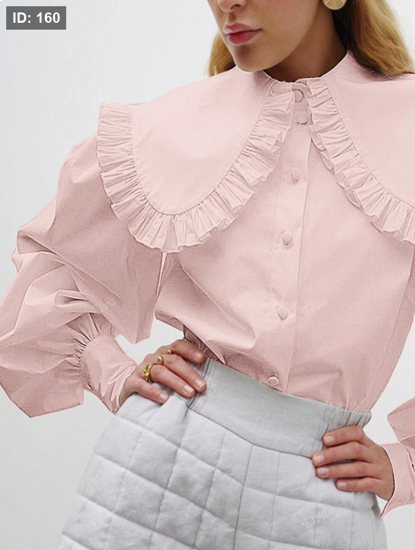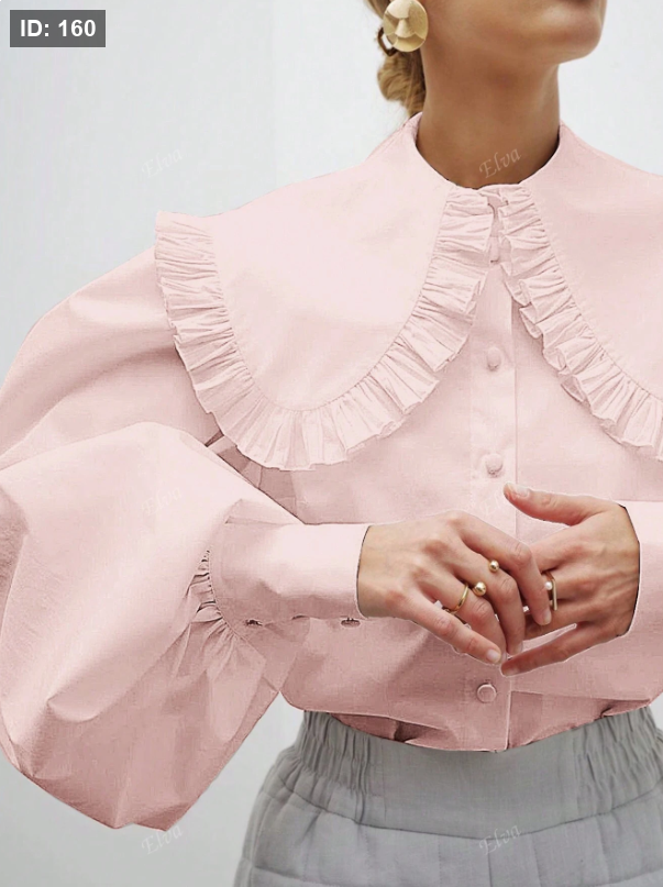 ميص أنيق بأكمام فانوس وياقة بيتر بان مبالغ بها، لون أحادي