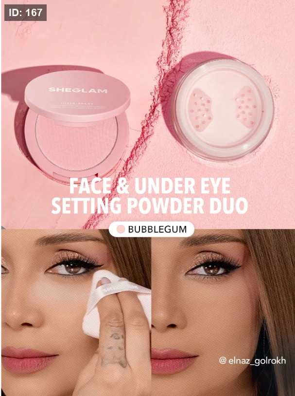 SHEGLAM بودرة تثبيت الوجه وتحت العين Insta-Ready Duo-Bubblegum 2 في 1 بودرة تثبيت سائبة للتحكم في الزيوت باللون الوردي، غير لامعة، خالية من المسام، بودرة مضغوطة تدوم طويلاً ومقاومة للماء