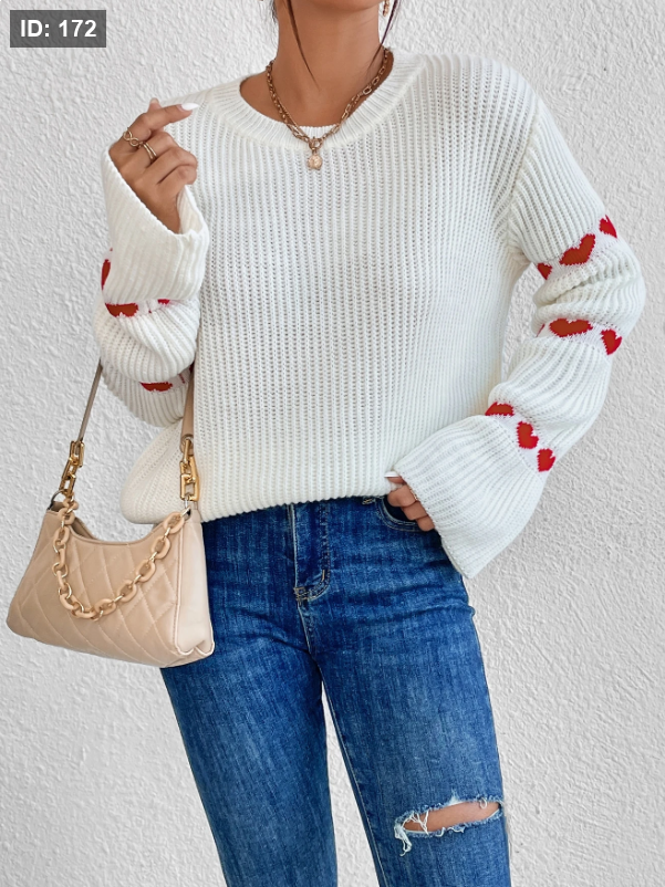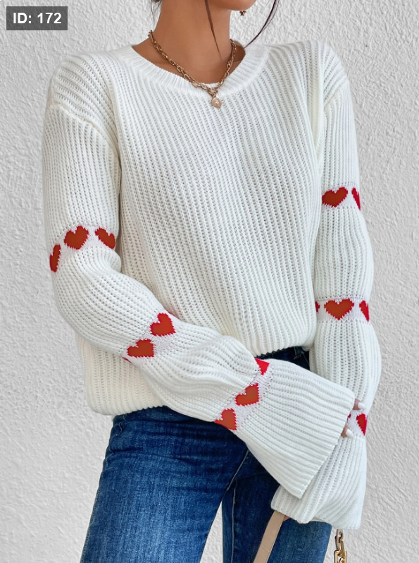 كنزة صوفية بنمط قلب وأكمام طويلة