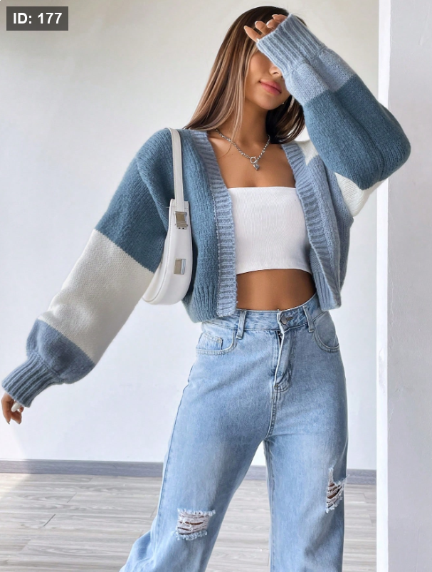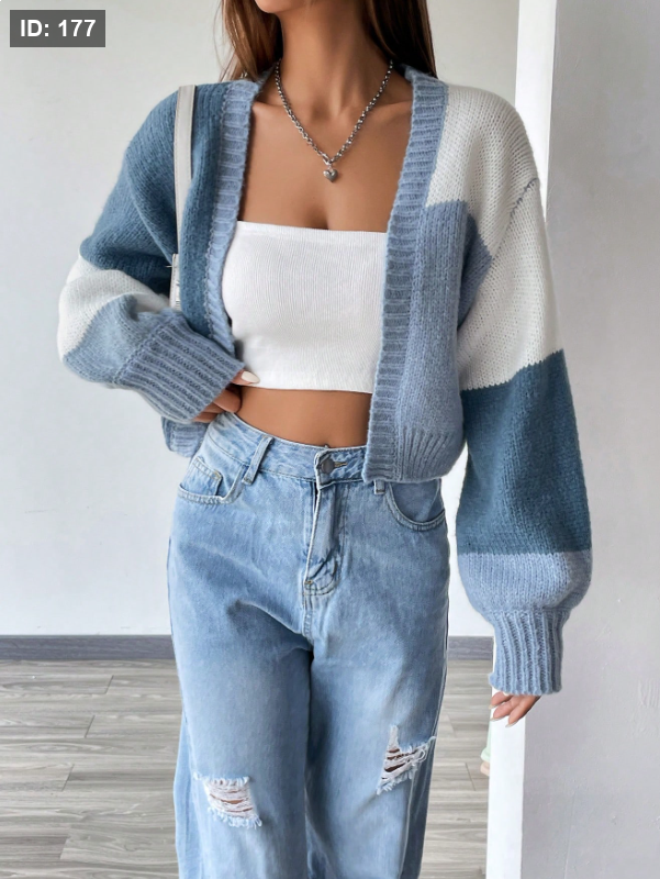 كارديجان فخم طويل الأكمام، ذو كتف متدلٍّ وألوان متباينة