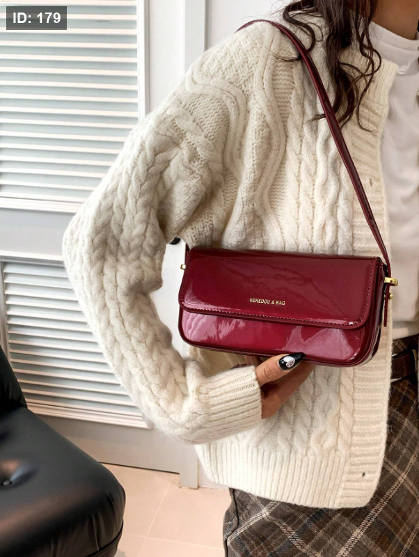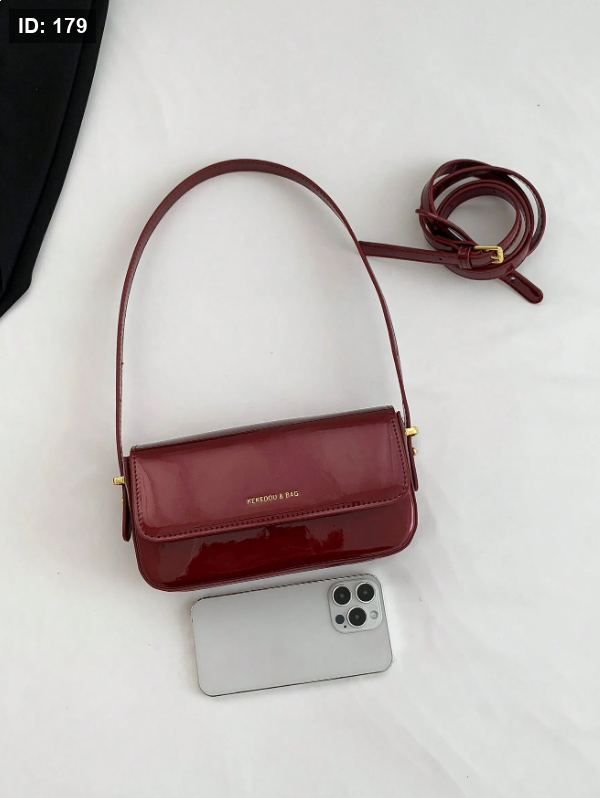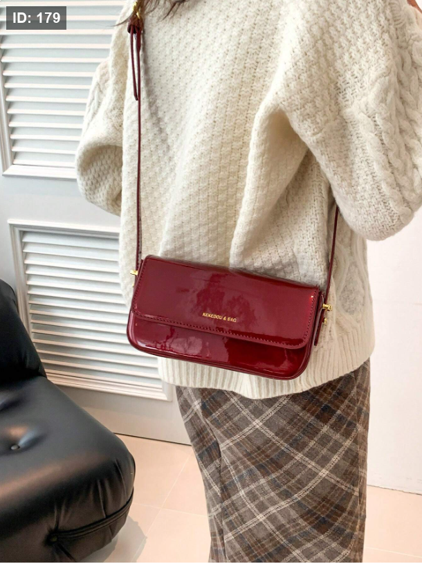 حقيبة مربعة صغيرة ذات لون بسيط أنيق موضة جديدة للمدرسة والتنقلات والسفر من جلد بيتنت ، لون عنابي