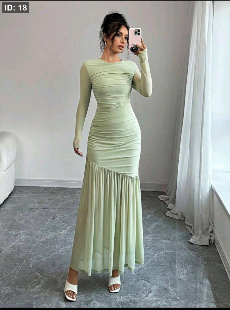 Firerie فستان طويل رقبة مستديرة أكمام طويلة من الشبكة للنساء ،فستان كاجوال للخريف. مناسب للملابس الخريفية