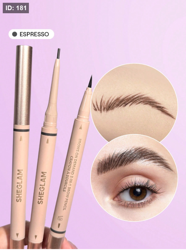 SHEGLAM قلم حواجب 2 في 1 من Brows On Demand-قلم حواجب سائل مقاوم للماء بلون الإسبريسو مقاوم للعرق ومضاد للزيوت وملء طبيعي للحواجب وتحديد الحواجب