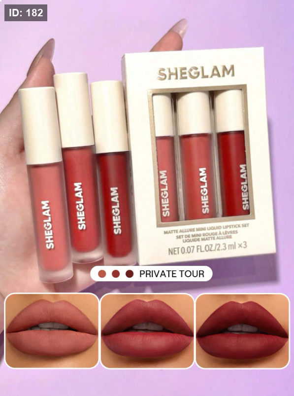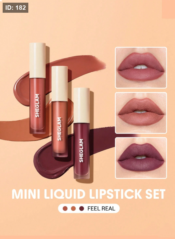 SHEGLAM مجموعة أحمر شفاه سائل صغيرة غير لامعة-3 قطع/مجموعة أحمر شفاه يدوم طويلاً مغذي بزيت عباد الشمس يقلل من الخطوط الدقيقة على الشفاه