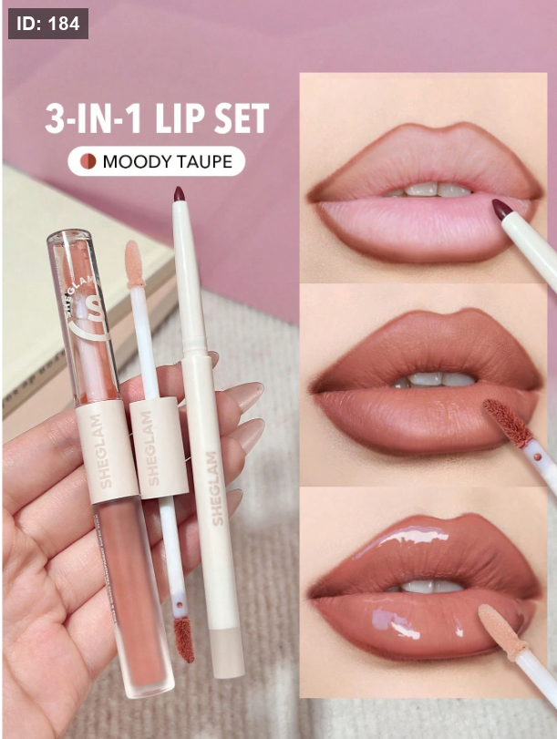 SHEGLAM مجموعة أحمر الشفاه Soft 90'S Glam Lip Liner And Lip Duo Set-Moody Taupe Lip Set 3-In-1 Lip Makeup Plumping Lip Gloss مرطب بخلاصة النباتات أحمر شفاه سائل يدوم طويلاً مكياج الشفاه Brown Liquid Lip Lipstick