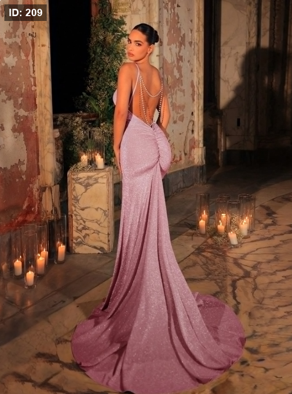 فستان سهرة ماكسي طويل ذو حمالات سباجيتي مز ركن ، شق جانبي أسماك القرش