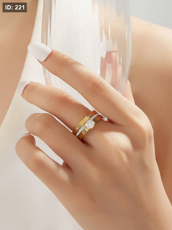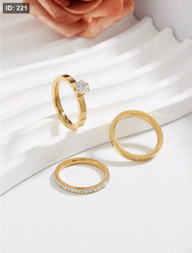 3 حلقات من الستانلس ستيل بطلاء ذهبي عيار 18 قيراط بأسلوب رائع ومرصعة بالزركون الكوبيك للنساء