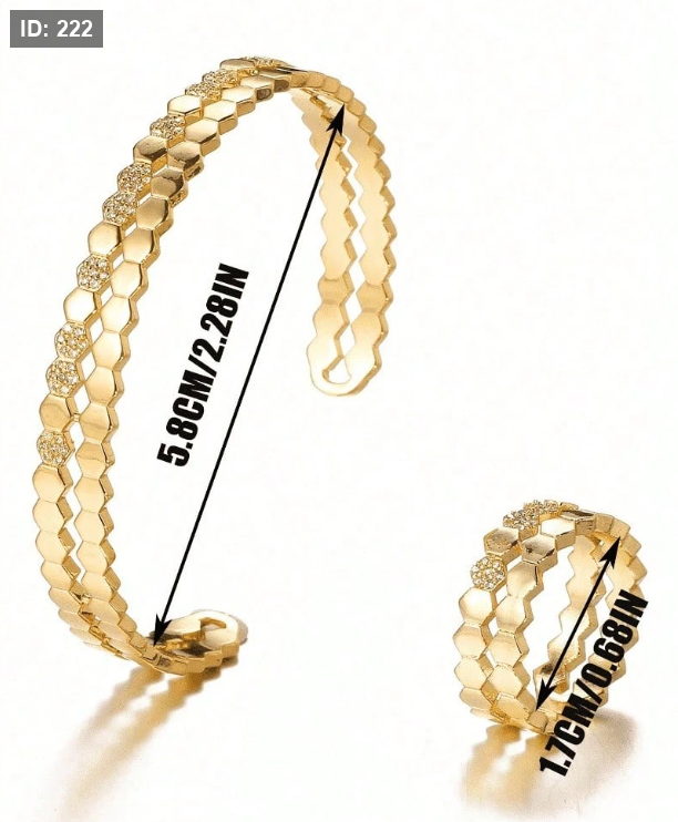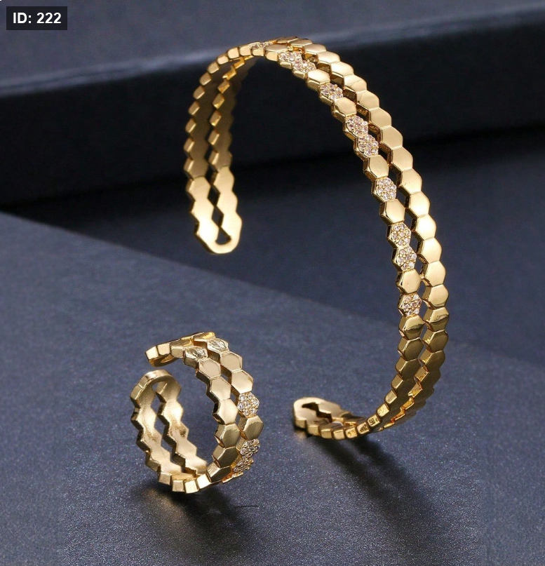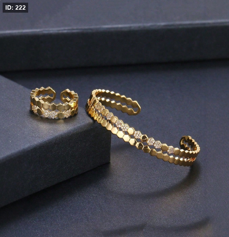 طقم سوار و خاتم من طراز كلاسيكي بلمسات نحاسية اللون مزخرف بالزركونيا المكعبة