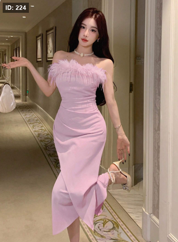 فستان متوسط الطول ضيق الخصر منحرف الكتف للنساء