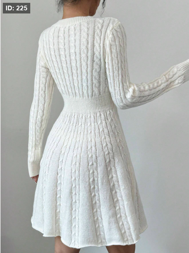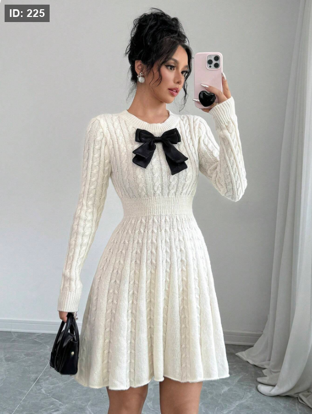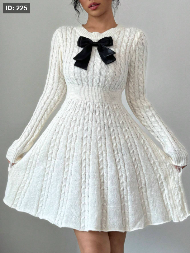 فستان كنزة منسوج بكابل الخصر المزين بفيونكة أنيقة للنساء