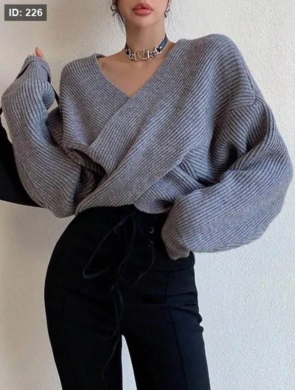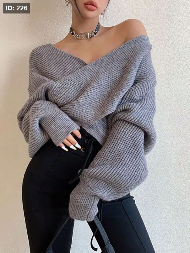كنزة صوفية صوفية أنيقة للنساء للخريف، ذات أكمام طويلة