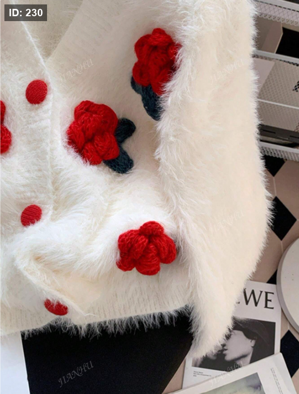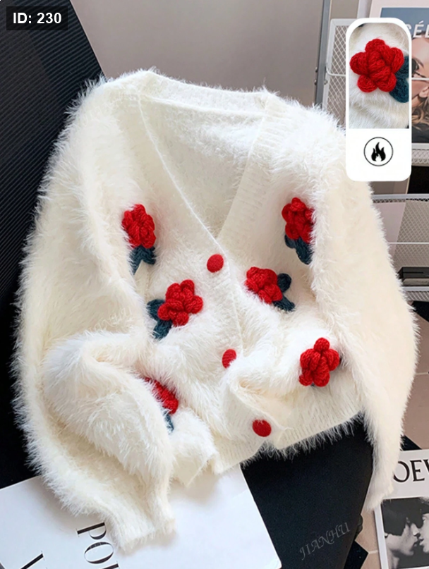 كارديجان مطرز بطراز قديم مفتوح من الأمام بياقة على شكل حرف V محبوك للنساء