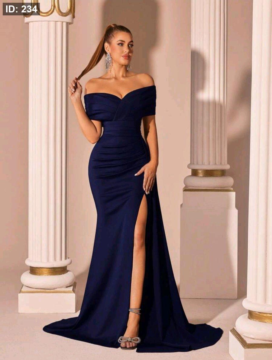 ADYCE فستان رسمي طويل بفتحة على الظهر وياقة على شكل حرف V وخصر مرتفع من الشيفون، مناسب للحفلات والسهرات
