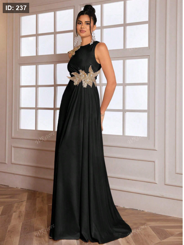 فستان سهرة أنيق عالي الشق مطرز بأزهار ثلاثية الأبعاد، فستان أسود رسمي للحفلات والسهرات، مناسب للضيوف بحفلات الزفاف، التخرج والعشاء