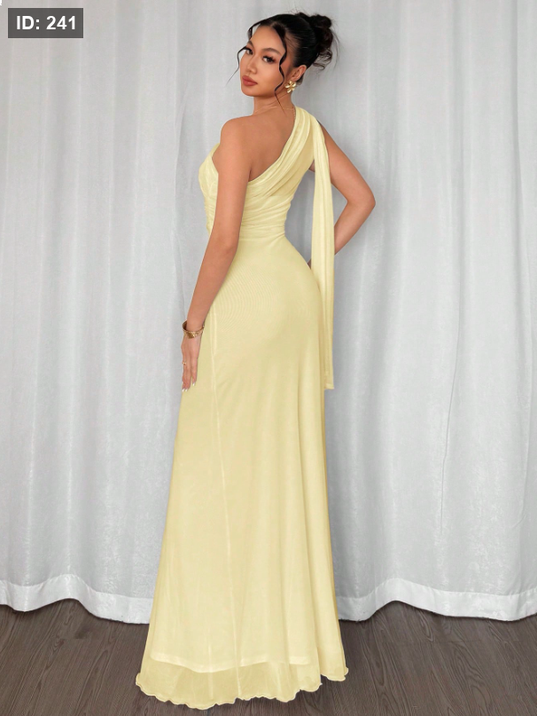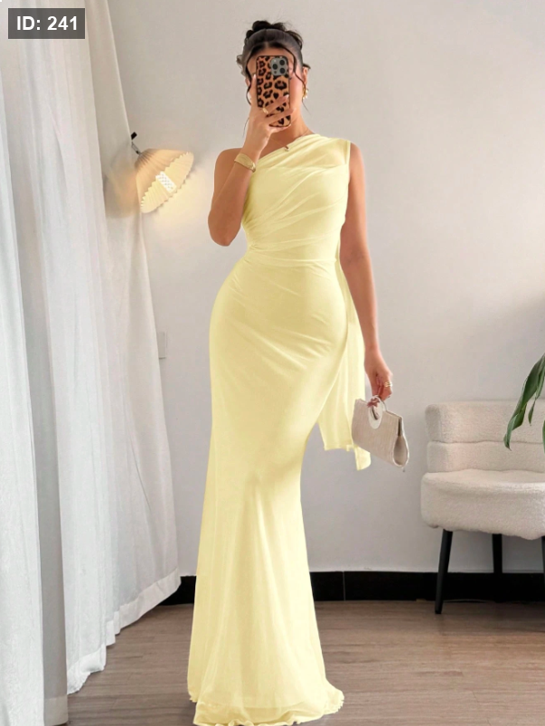 فستان ماكسي مضغوط على الجسم مريح وأنيق ، فاتن، عصري غير متماثل في الرقبة