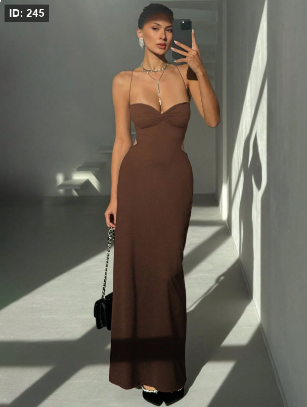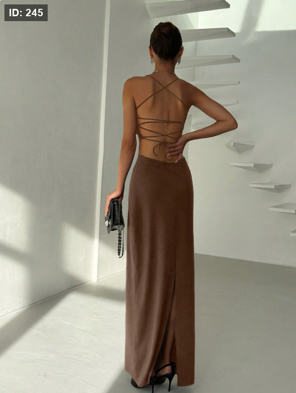 فستان صيفي للنساء بنمط بسيط أحادي اللون لف أمامي ملفوف ظهر مكشوف من الخلف