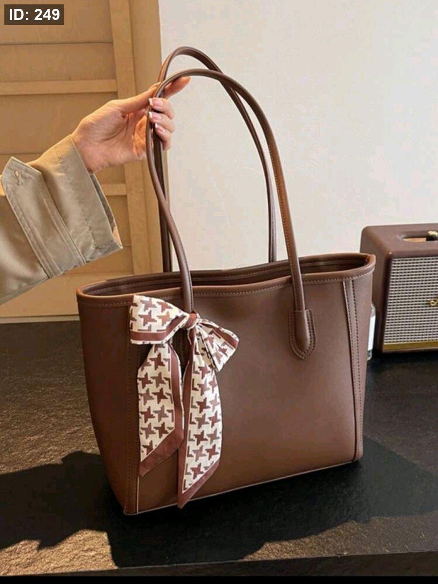 حقيبة كتف جلدية بسعة كبيرة وتصميم عصري بلون أحادي، حقيبة كتف عتيقة بتصميم بسيط مناسبة للنساء