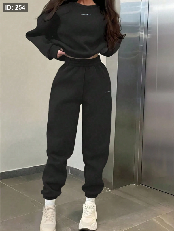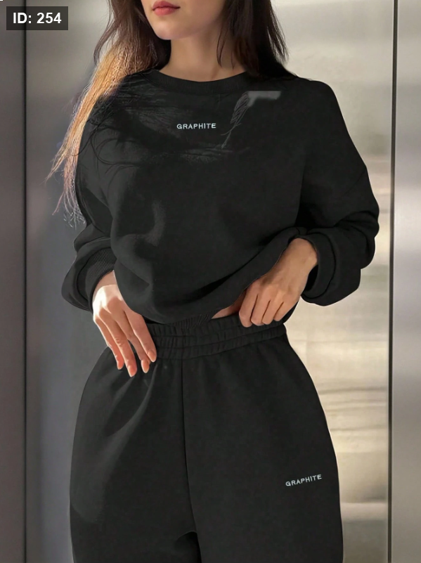 INAWLY طقم بلوزة وبنطال رياضي كاجوال للنساء بطبعات حرفية، موسم الخريف/الشتاء، 2 قطعة
