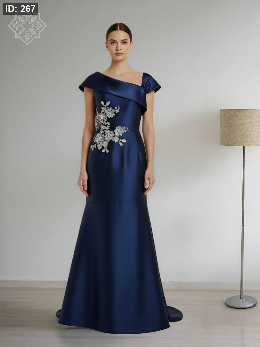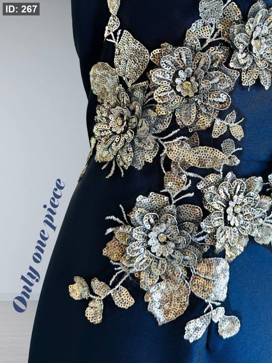 فستان قماش الفاي مطرز بالورود الفضية