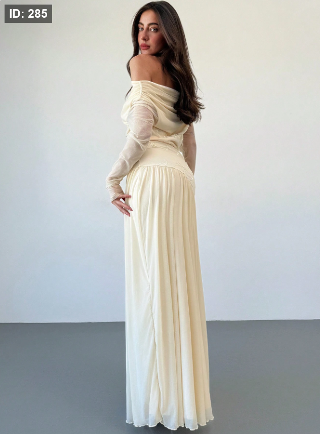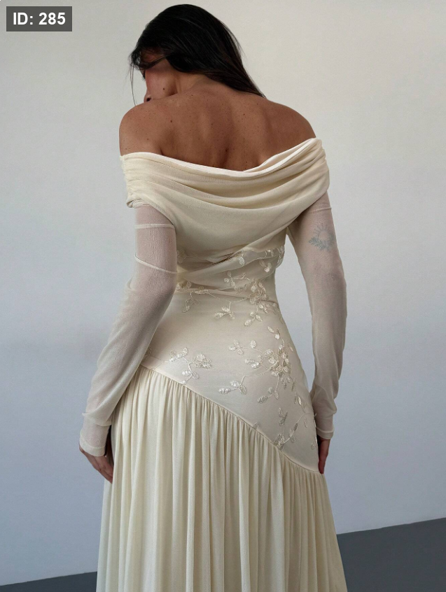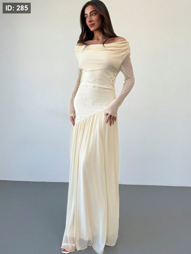 فستان طويل الأكمام أنيق بزخارف مطرزة باللمسة مكشوفة الكتف