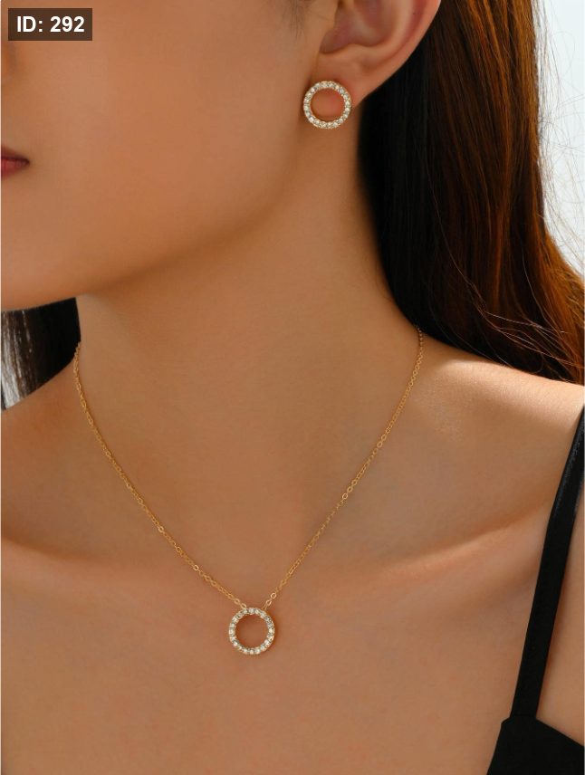 طقم مجوهرات حجر الراين بديكور دائري 3قطعات/طقمرمضان