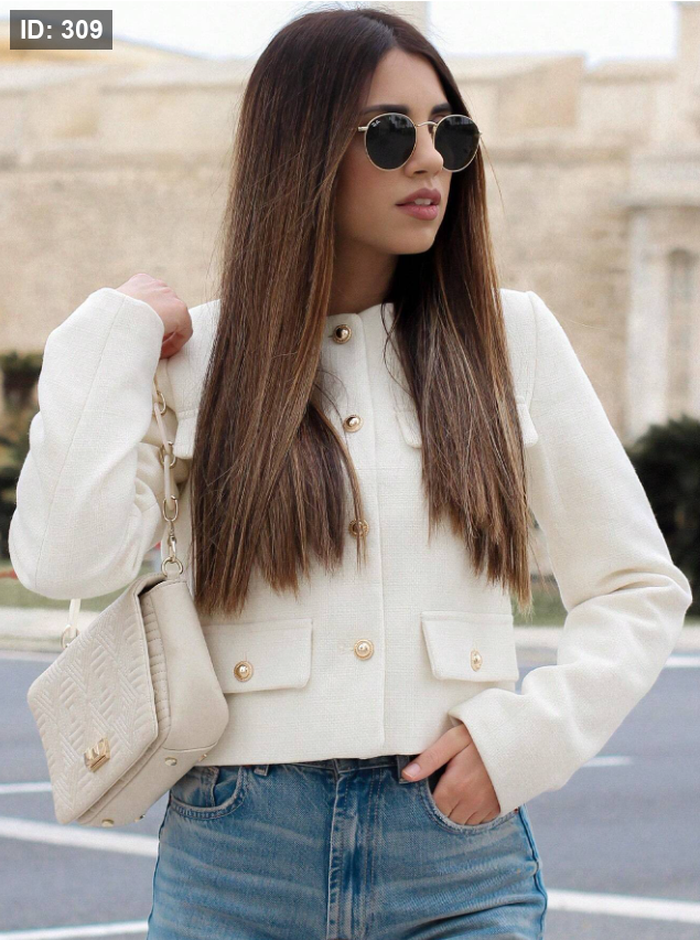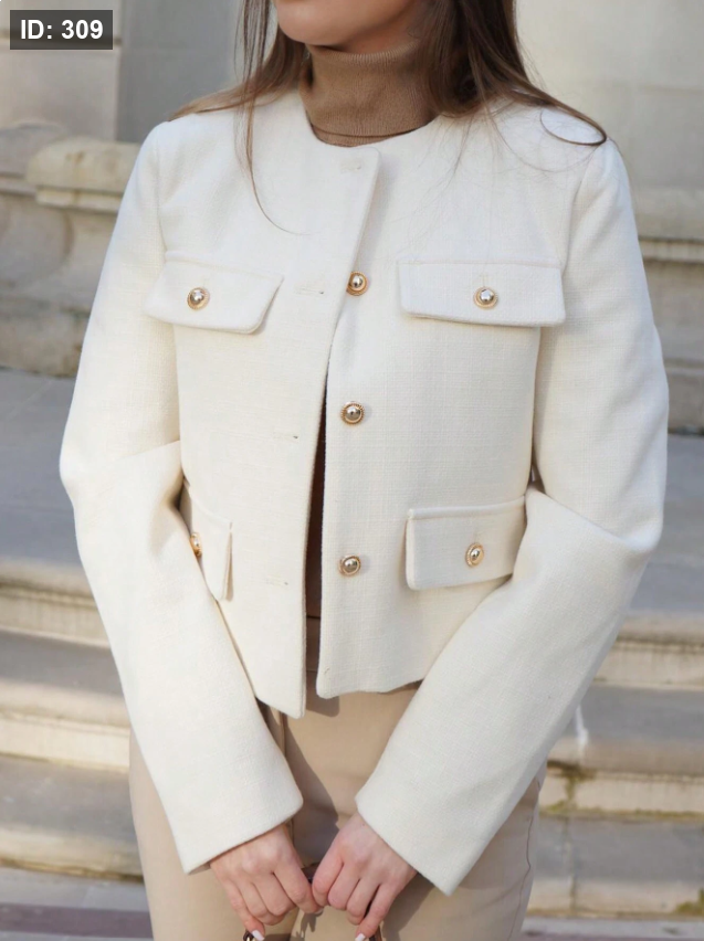 معطف المرأة الأنيق الكاجوال من التويد، ربيعي، ياقة مستديرة، أكمام طويلة، لون أحادي