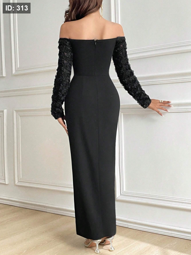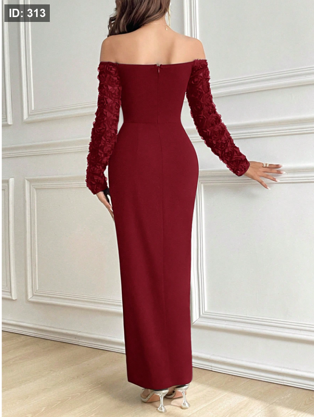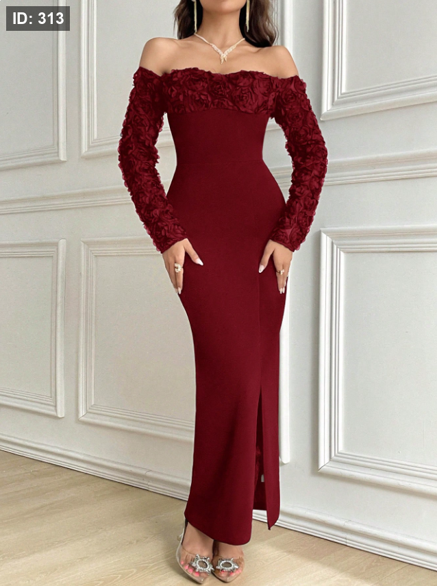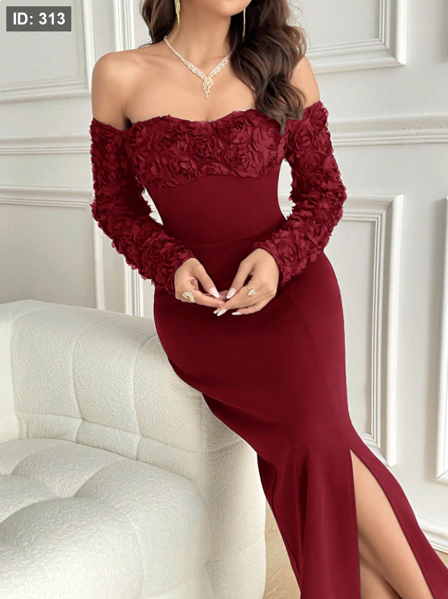 فستان نسائي كاجوال بأكمام طويلة بلون بوردو داكن بقصة ضيقة للارتداء اليومي