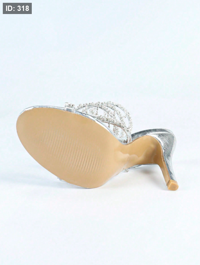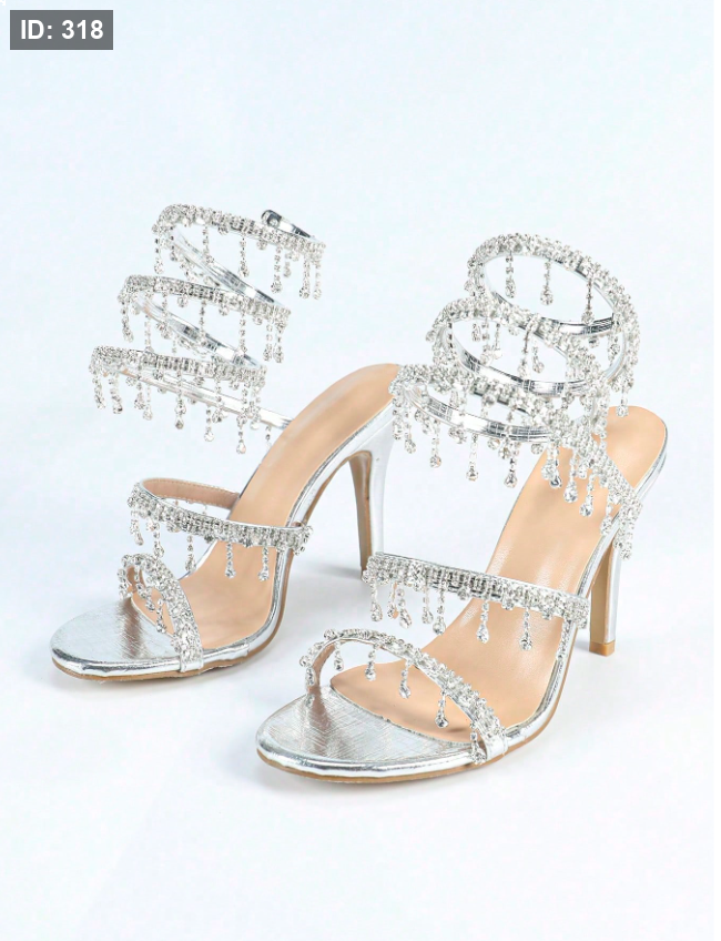 حذاء نسائية بكعب عالي رفيع، موضة بسيطة مع حزام مرصع بالراين ولف الثعبان حول الأصبع