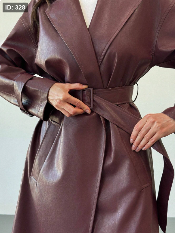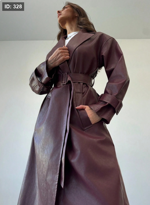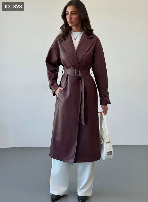 معطف نسائي طويل من الجلد الصناعي بلون أحمر ، بطراز عصري شارعي
