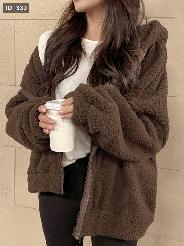 معطف هودي تيدي مقاوم للماء مع سحاب، هودي كاجوال
