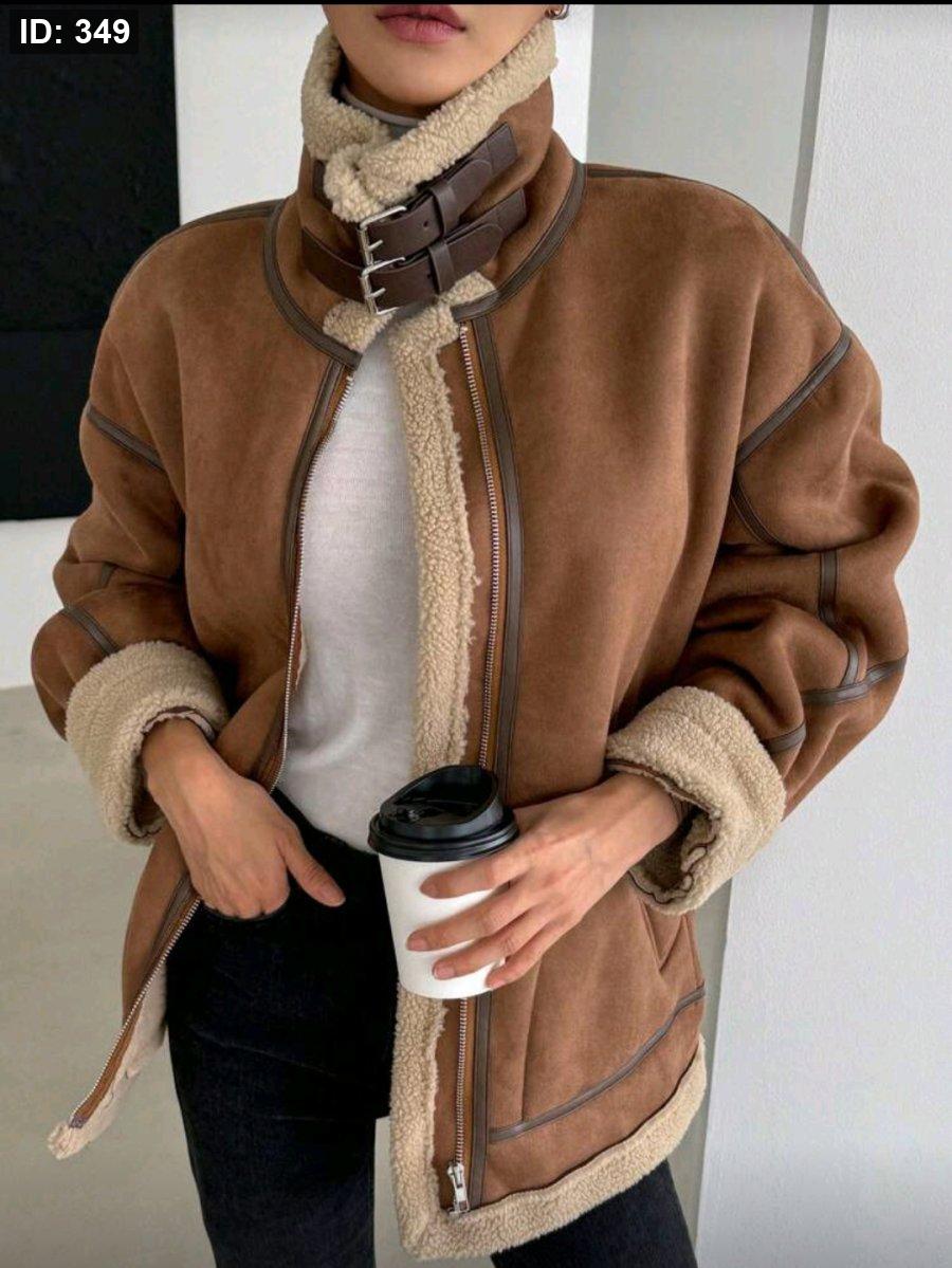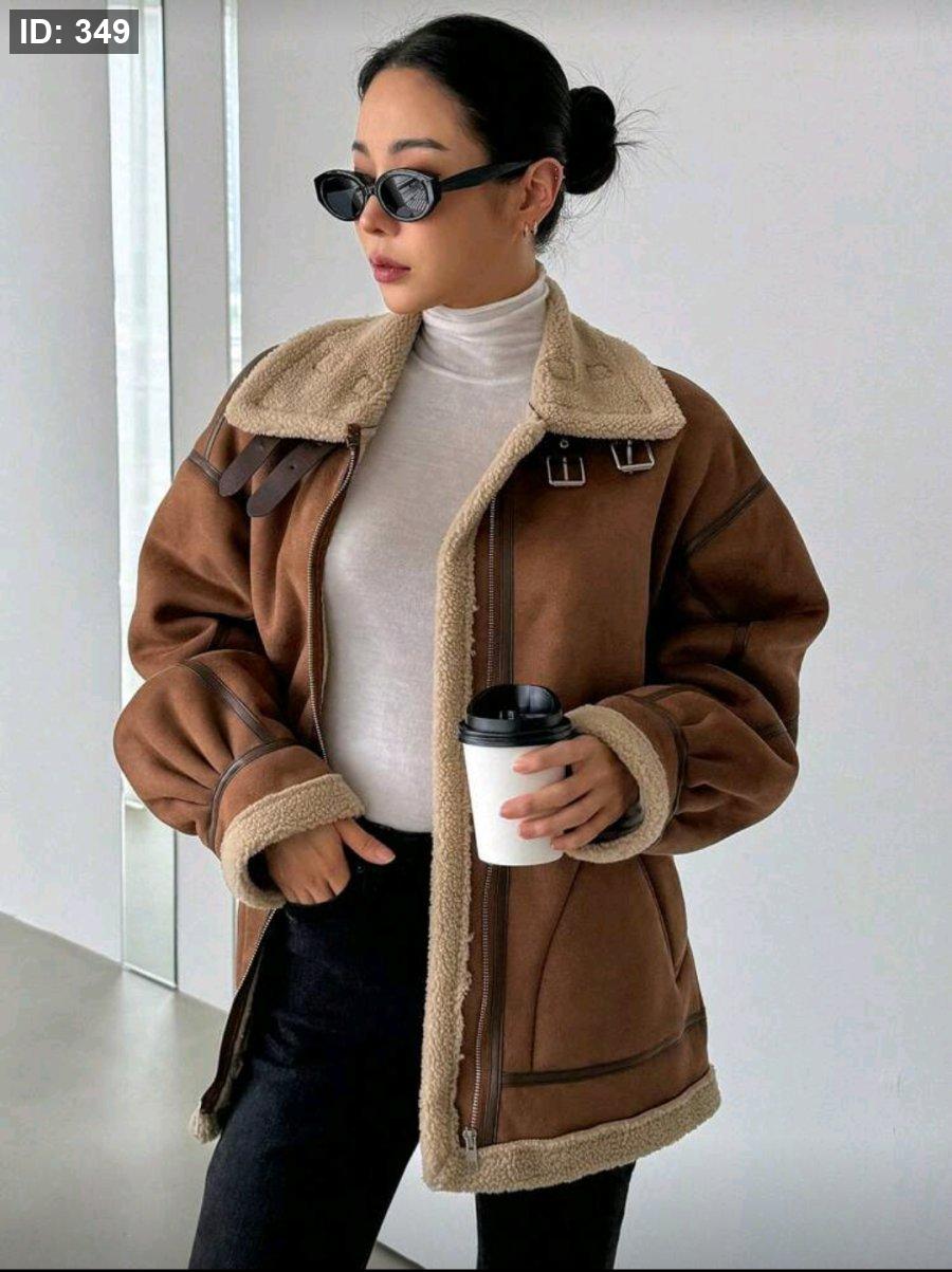 DAZY معطف نسائي من الجلد المدبوغ مبطن بالحرارة سميك، ملابس شتوية نسائية، معطف شتوي نسائي، ملابس خريفية نسائية، مبطن بالحرارة