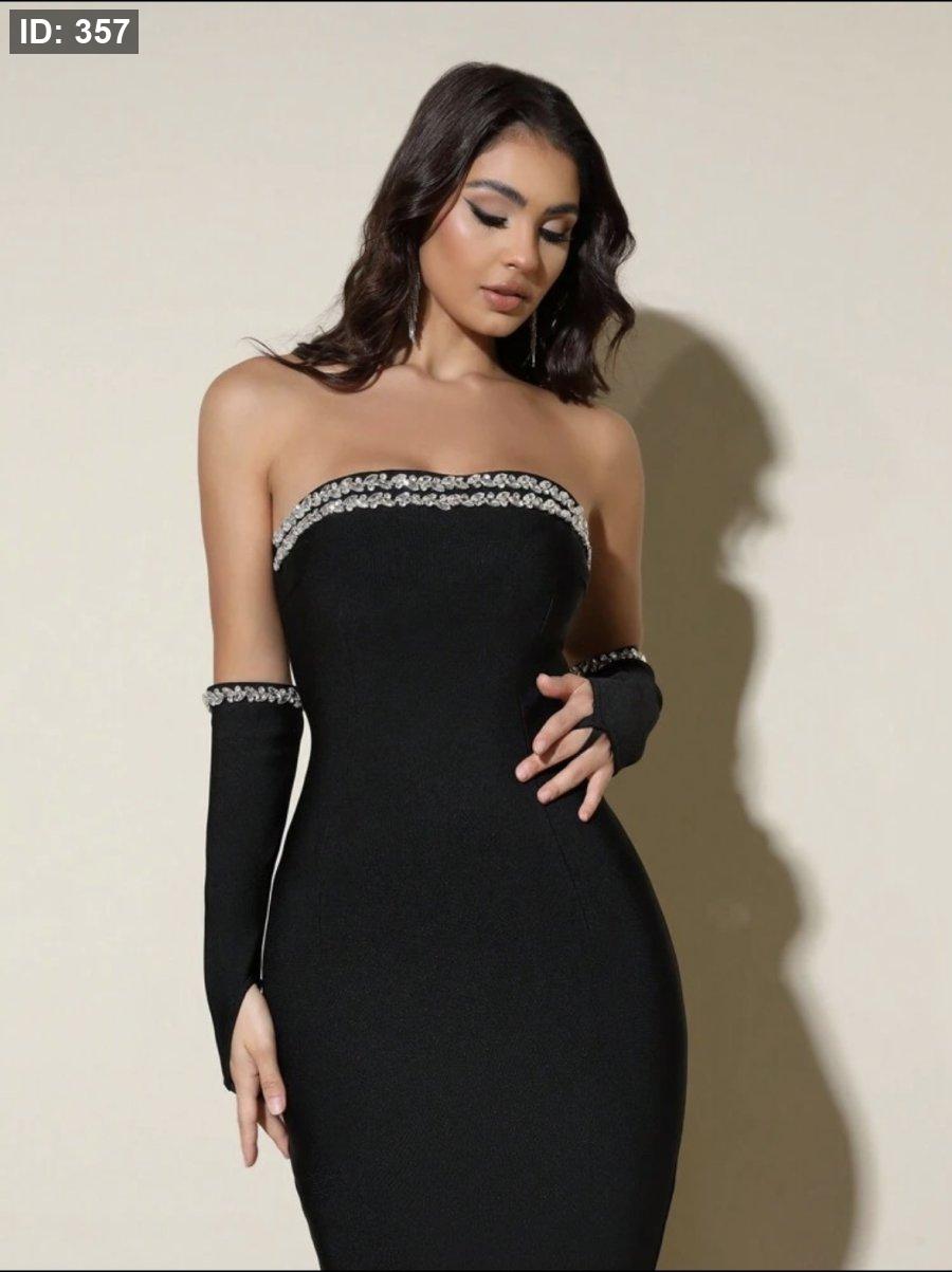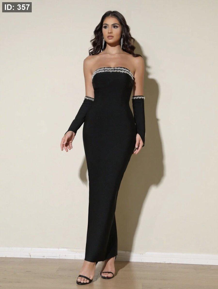 Love Aing فستان سهرة أنيق للنساء باللون الأسود مزين بالراين ستون مع شق جانبي مثير، مناسب للحفلات الراقية والزفاف وضيوف الحفلات والمناسبات الرسمية والسهرات الفاخرة