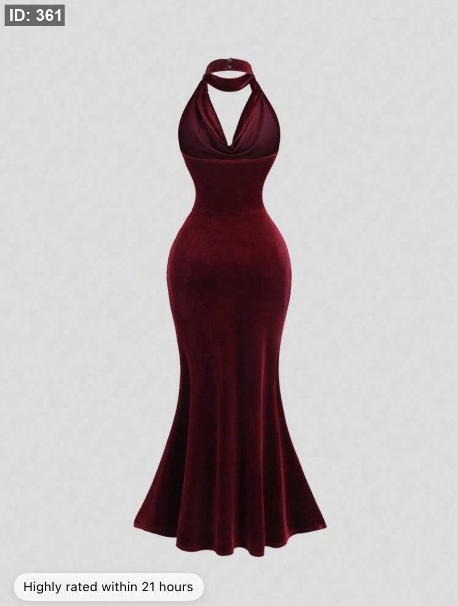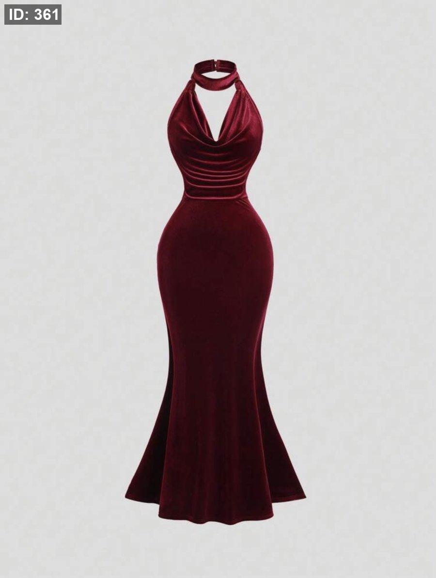 Sweetra فستان حفلة رأس السنة الأنيق والعتيق باللون الأحمر، تصميم متطور بياقة مدرجة من الأحمر الأنيق والظهر مكشوف وذيل بتصميم الحورية، أنيق وعصري للنساء، مناسب للخريف والشتاء
