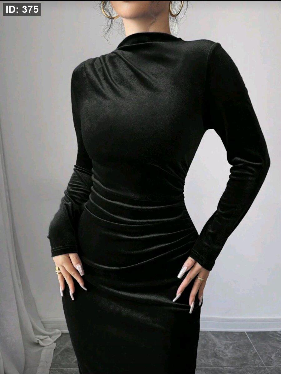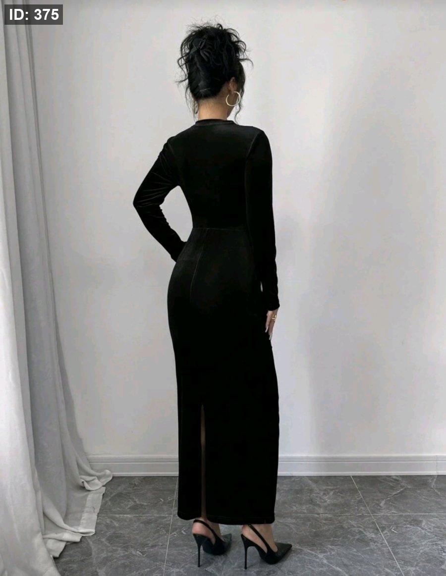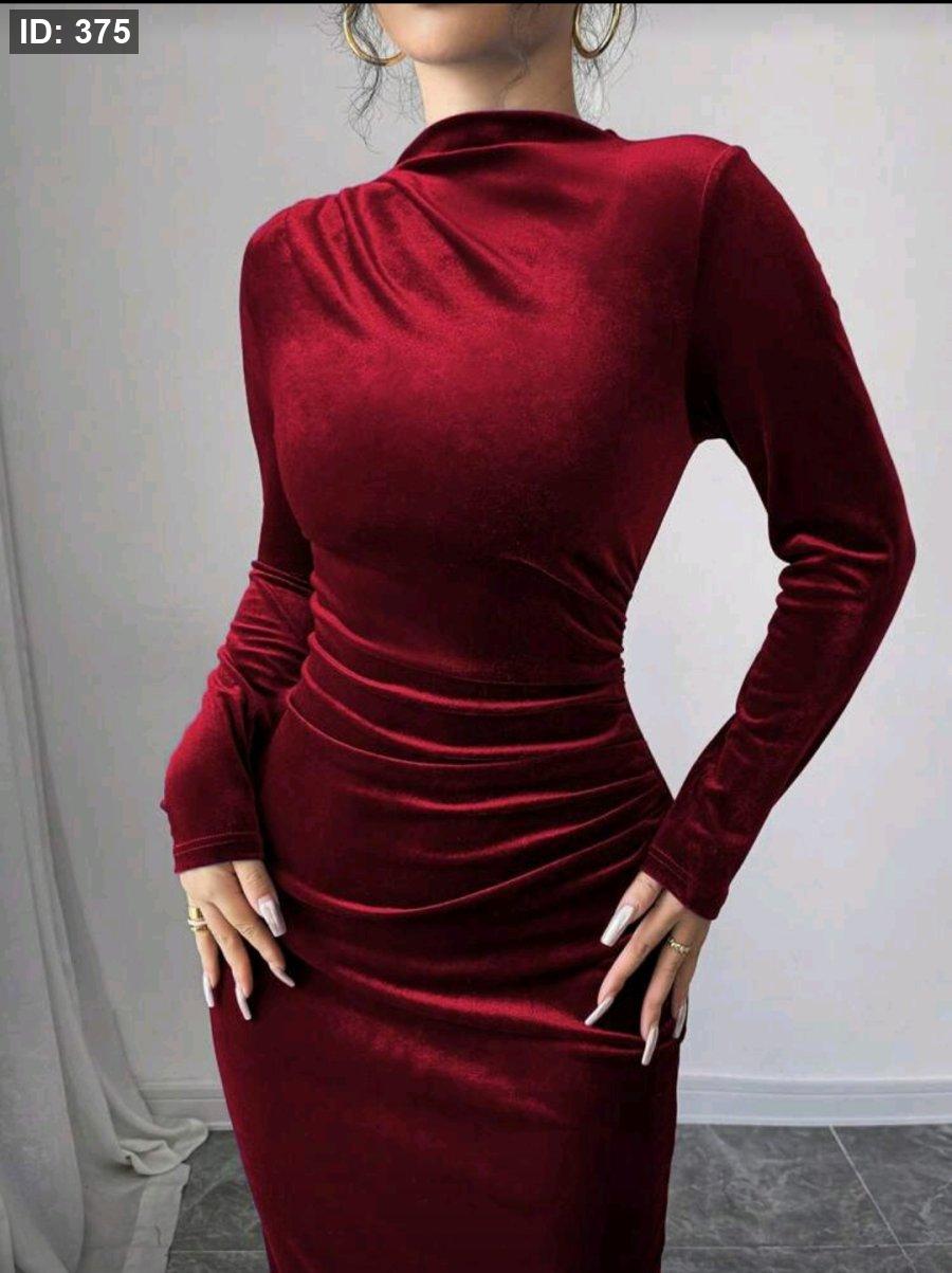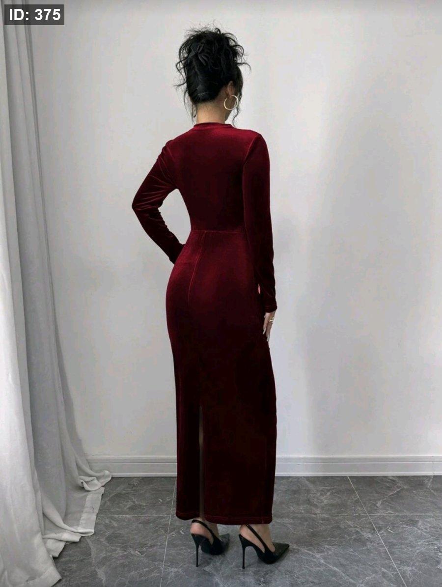 Selianne فستان طويل من المخمل الأنيق للنساء مزين بكشكشة غير متماثلة مع شق في الذيل باللون البرجندي