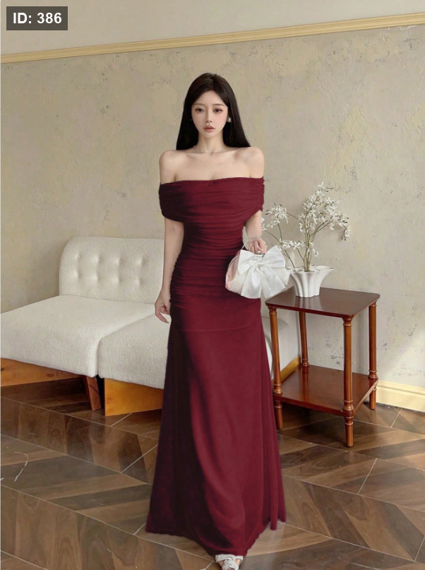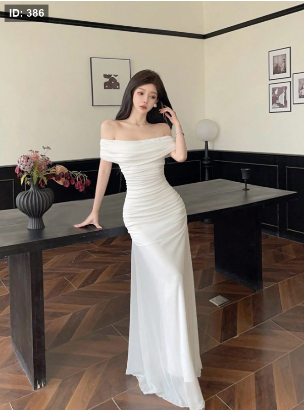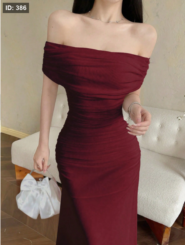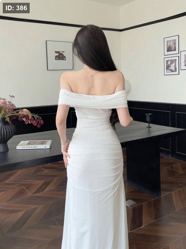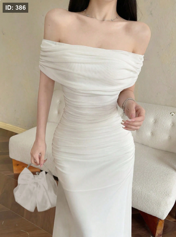 فستان نسائي من التور بأكتاف متدلية وخصر مكشكش، أنيق للزفاف