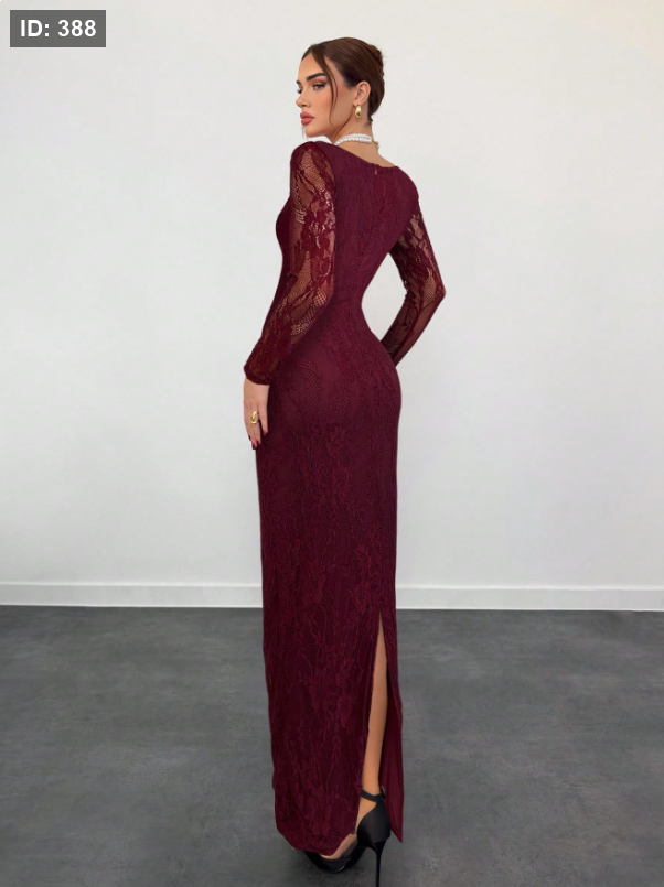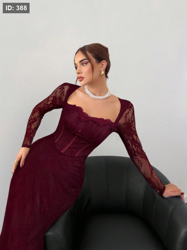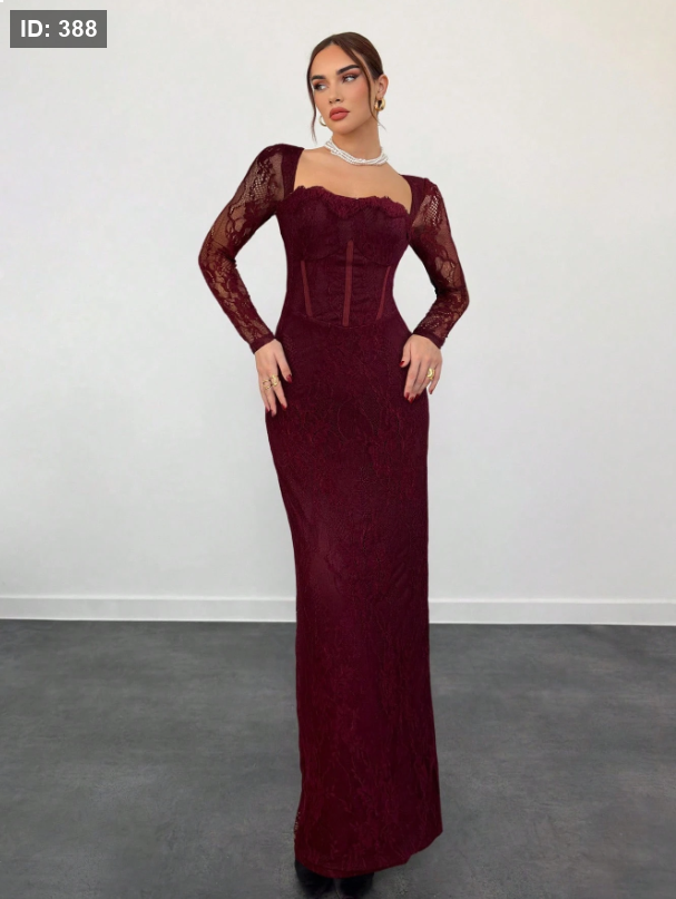 فستان ماكسي ضيق بأسلوب حمالة الصدر شبكي بأكمام طويلة