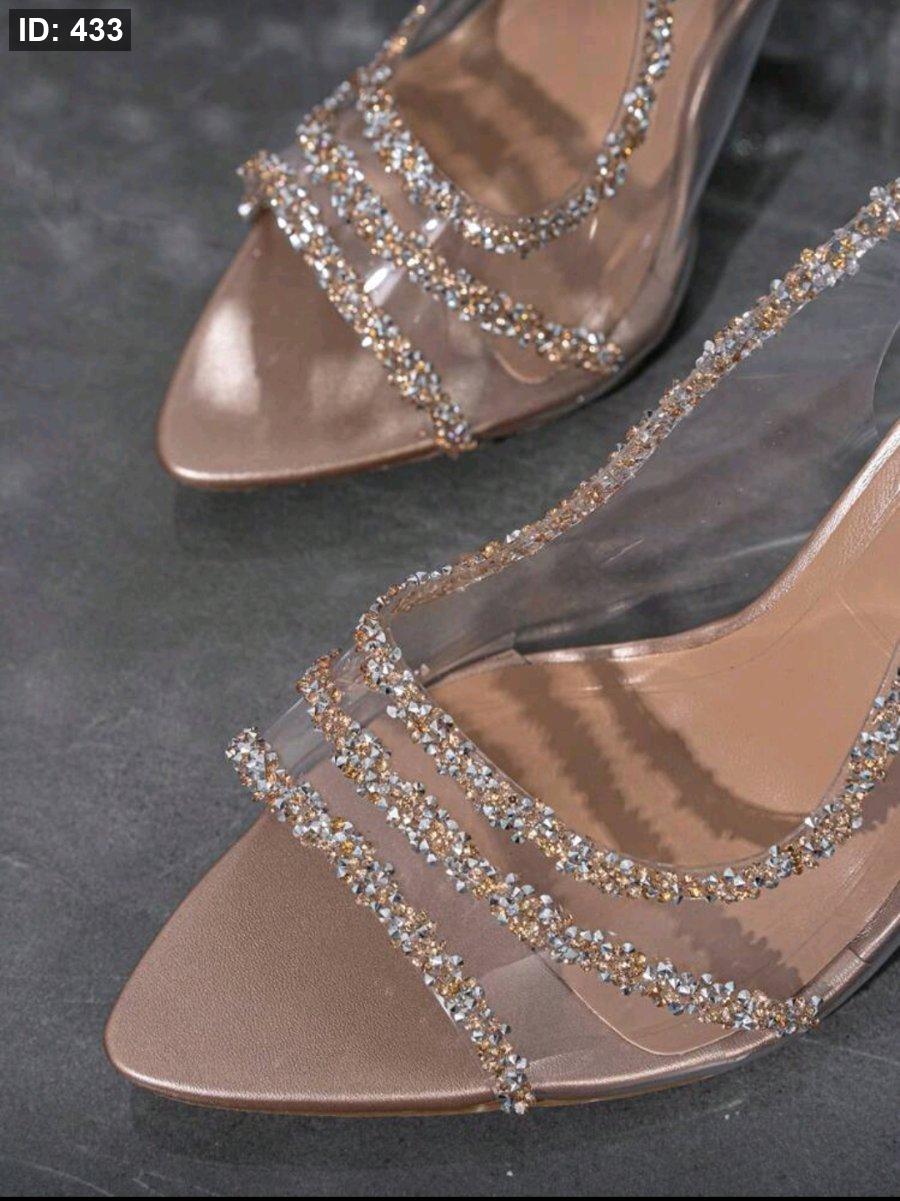 حذاء نسائي عالي الكعب شفاف بتصميم PVC ومزين بالراين، صندل عالي الكعب للمناسبات الصيفية مفتوح من الأصابع وذو أحزمة رفيعة