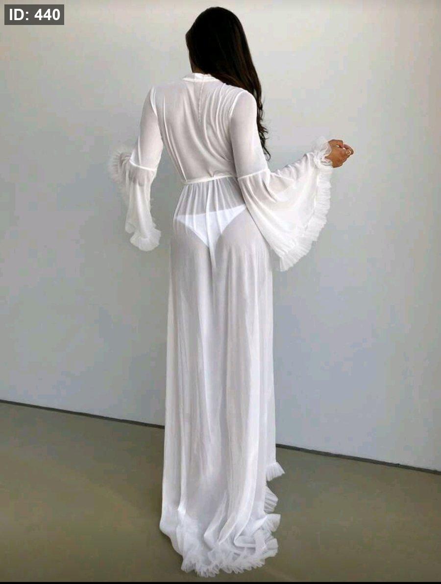 Aloruh رداء نوم بأكمام قصيرة مزخرف بالشبك وحزام بدون طقم ملابس داخلية