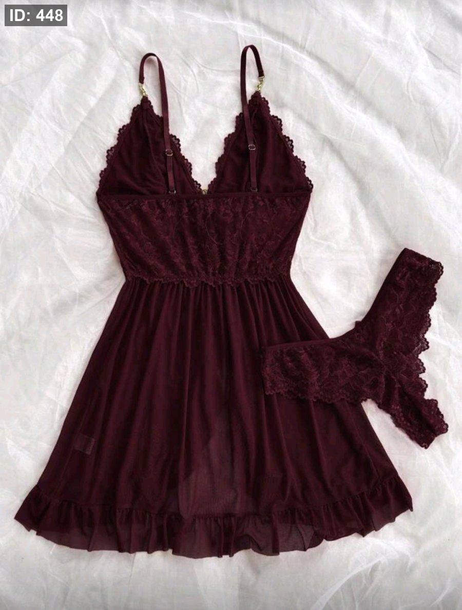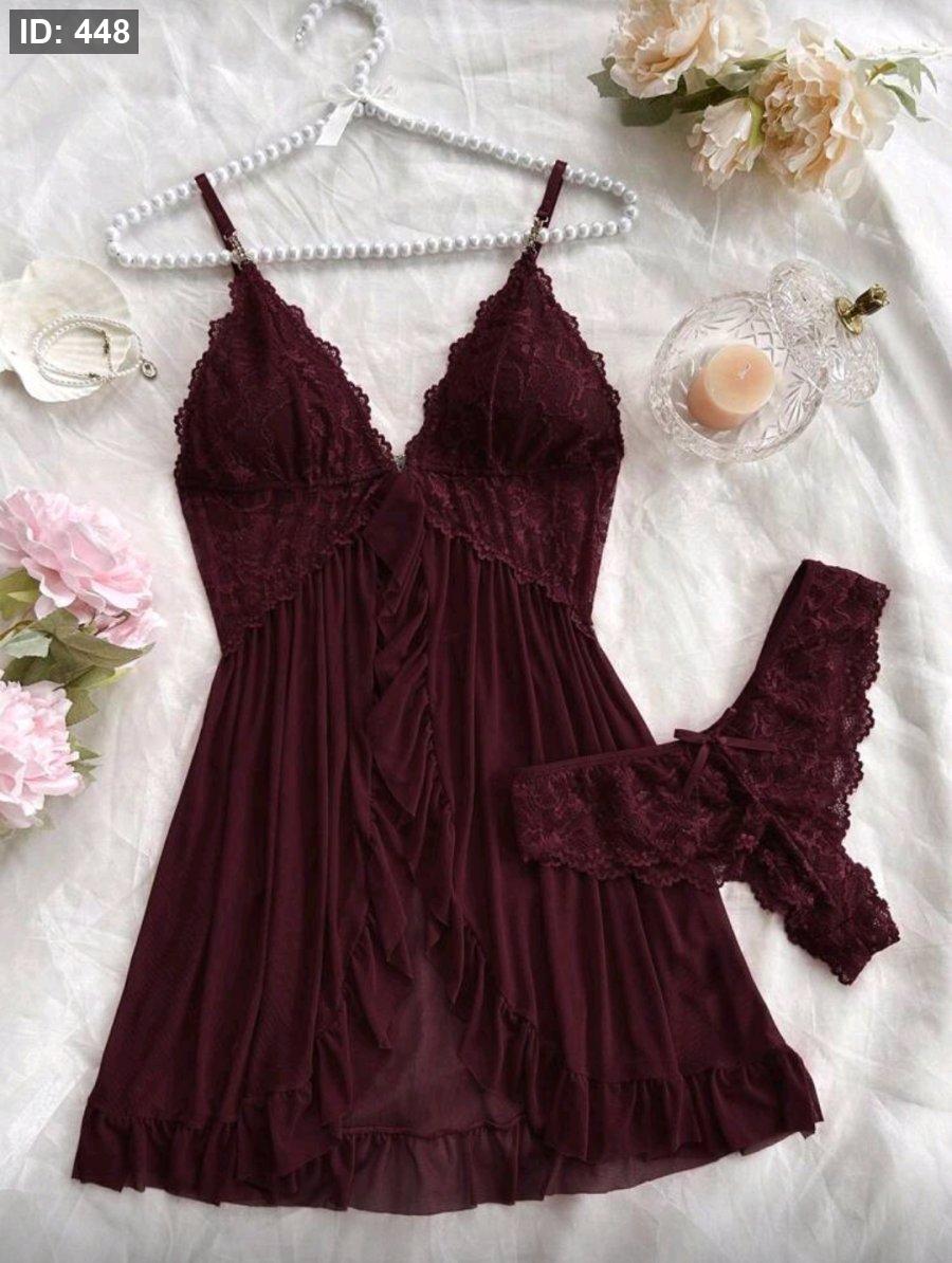 قميص نوم نسائي بتصميم رقبة على شكل حرف V مع سراويل داخلية مطابقة من الدانتيل، التصميم الأنيق للرقبة يبرز الأناقة، والنقشة الدقيقة للدانتيل تضفي أنوثة ناعمة، وحافة مكسرة وبوسط مثير، هدية مثالية لها في عيد الميلاد أو عيد الحب