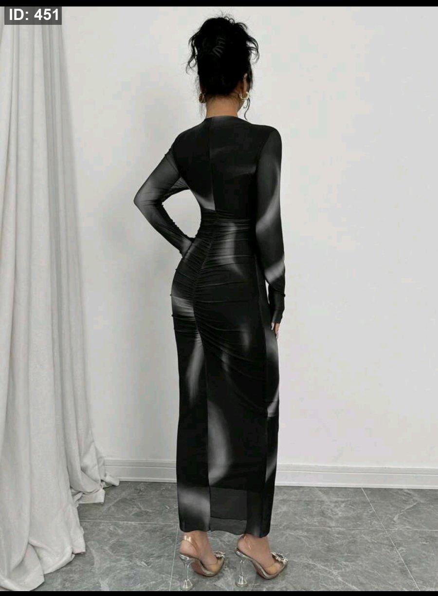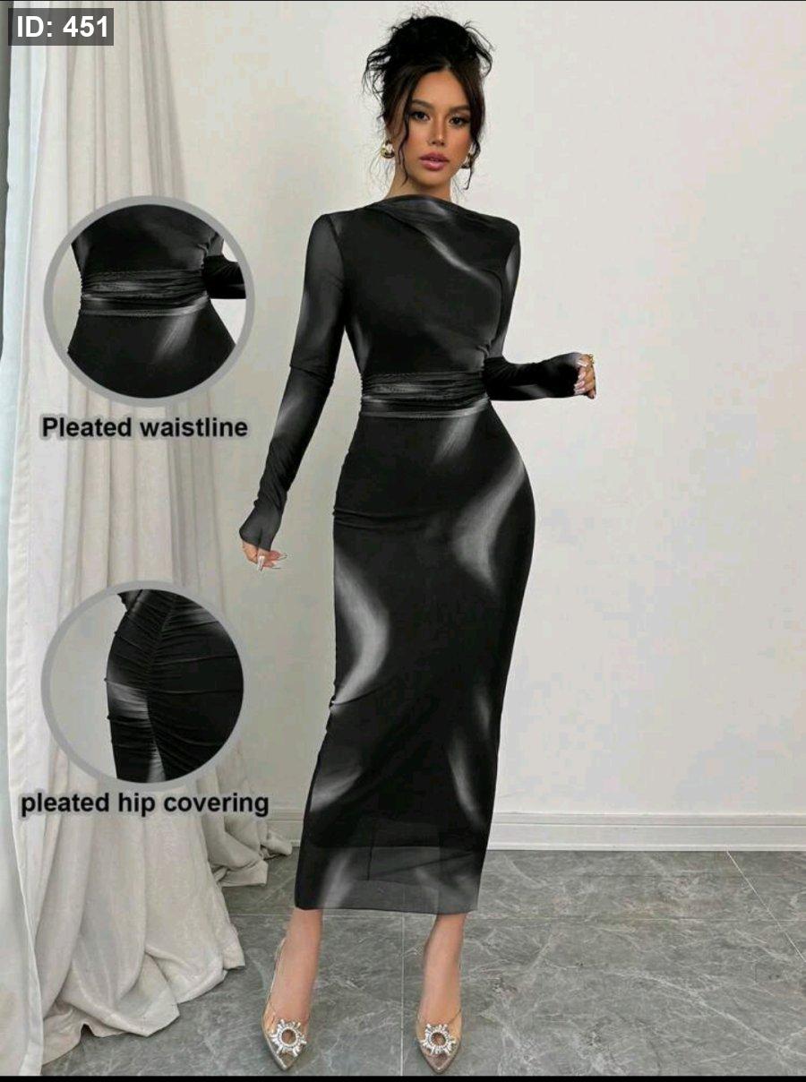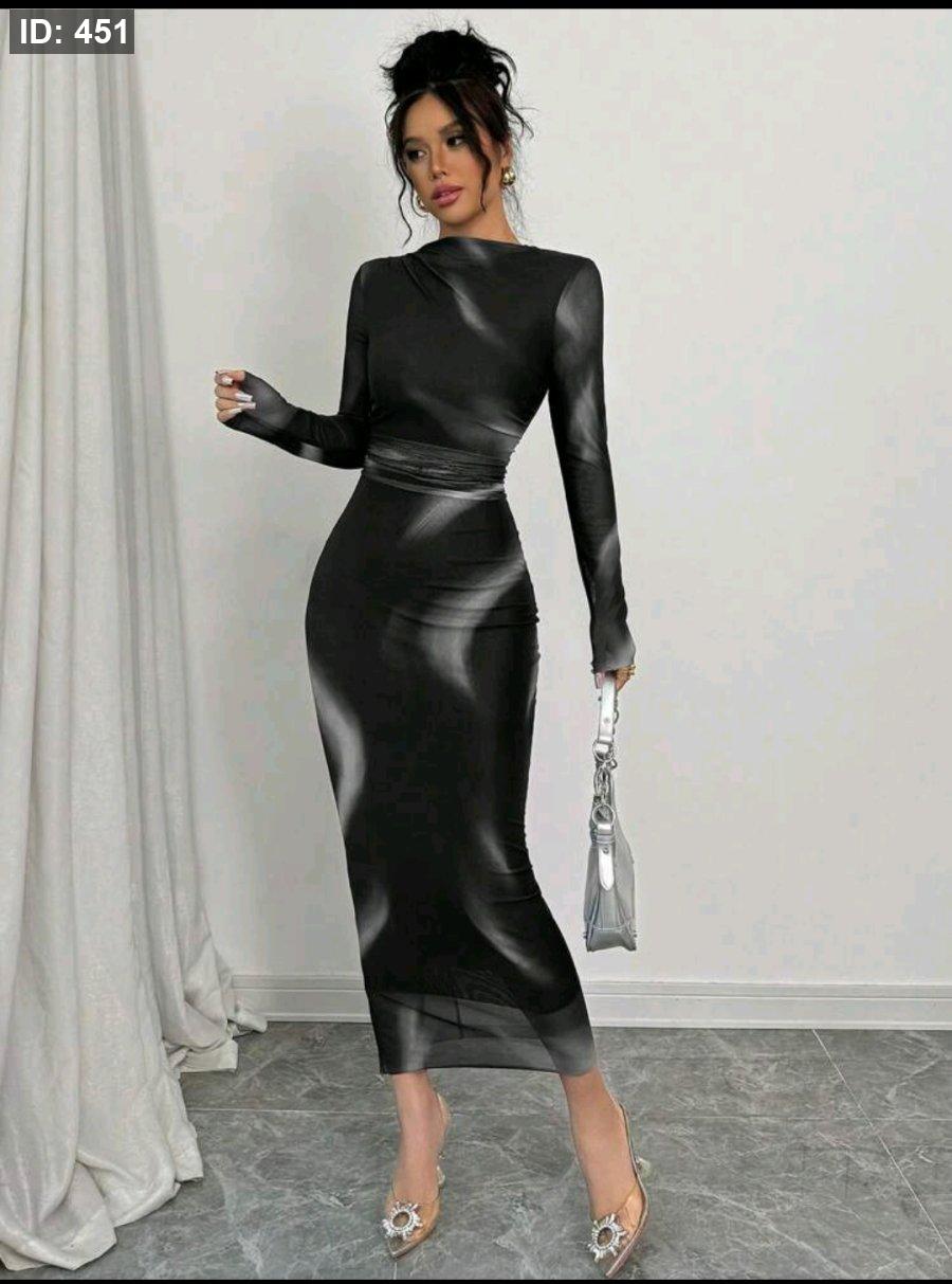 Elenzga فستان ماكسي شبكي للنساء بطبعة أومبير مرن وأنيق