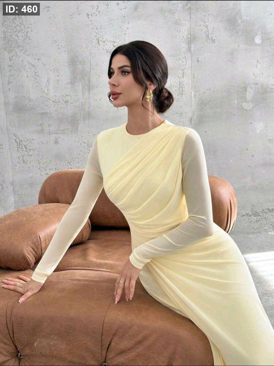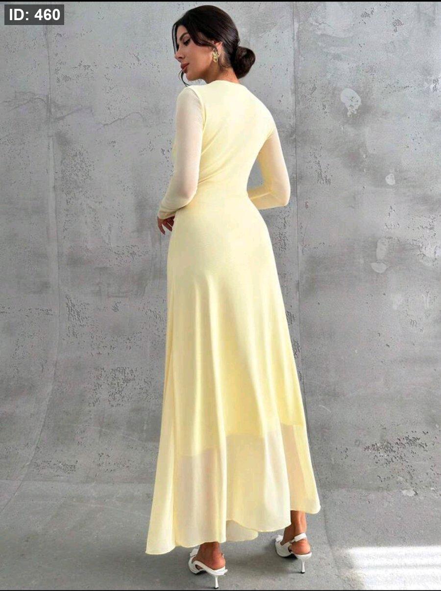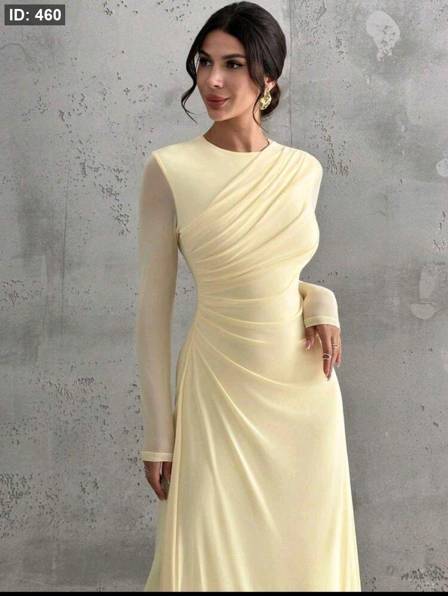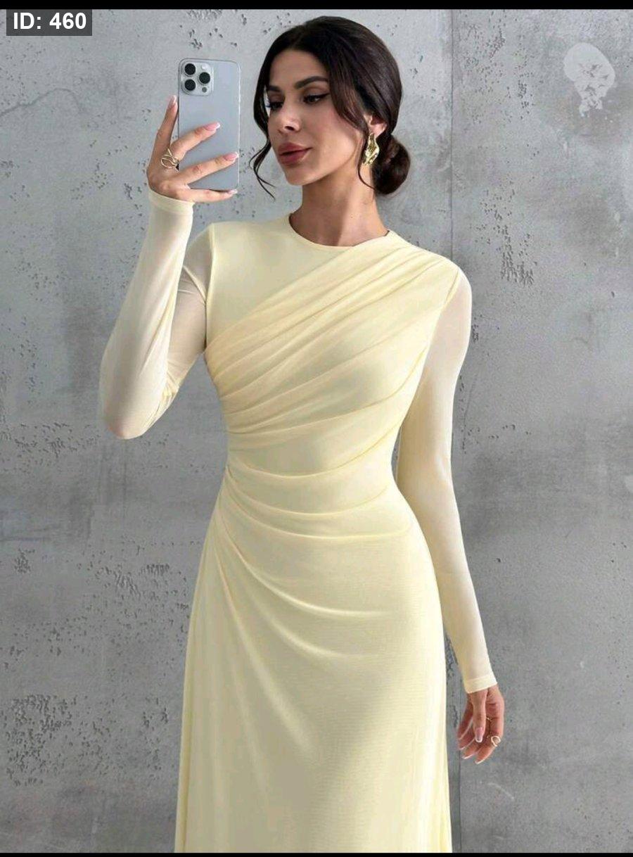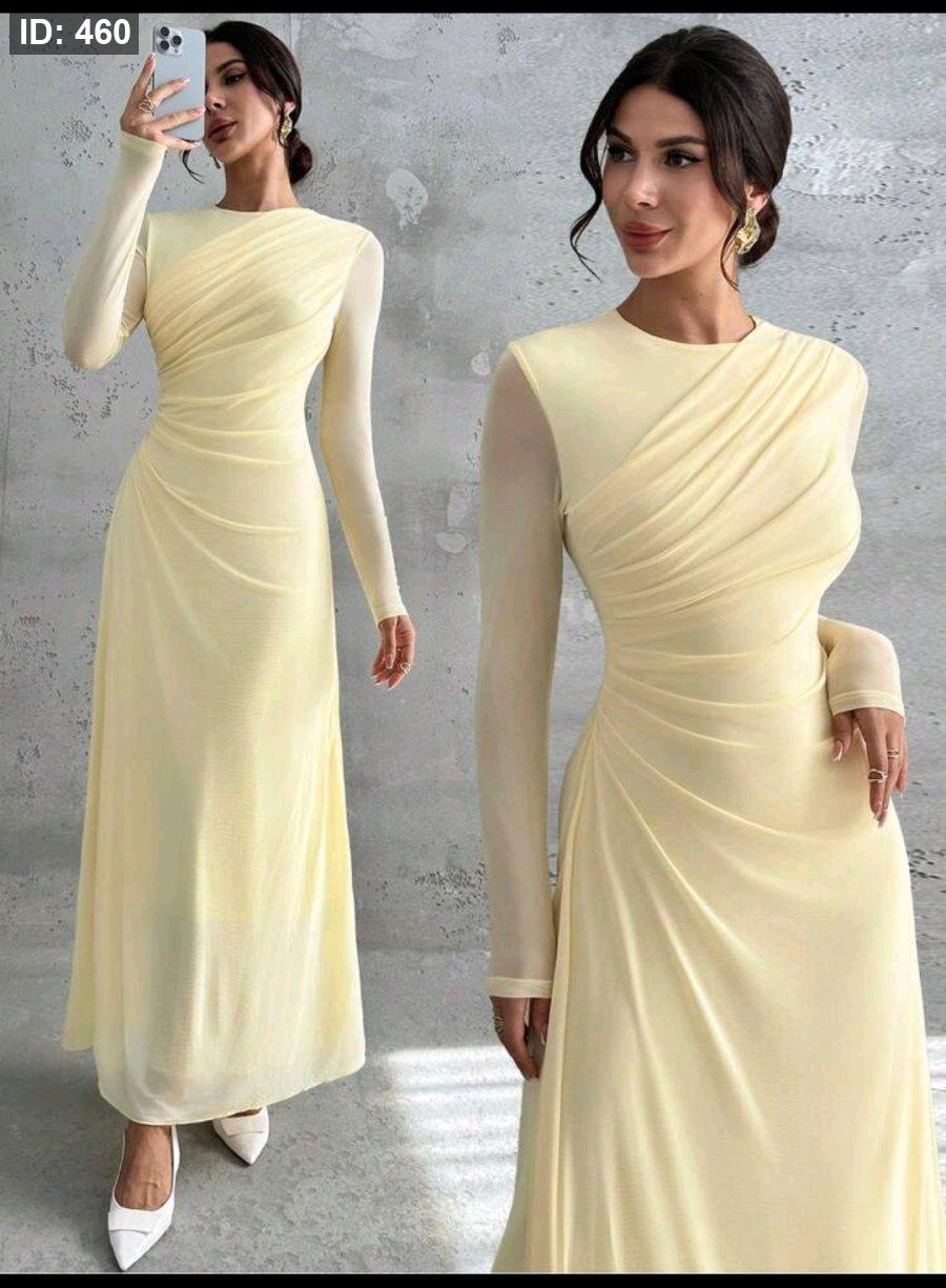 Firerie فستان ماكسي أنيق للنساء بأكمام طويلة وياقة مستديرة وخصر منتفخ، لون أصفر فاتح، مناسب للمناسبات الرسمية والعمل والعطلات والحفلات والأسلوب الكلاسيكي