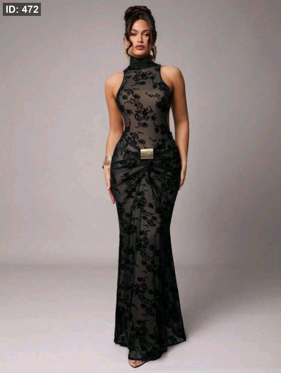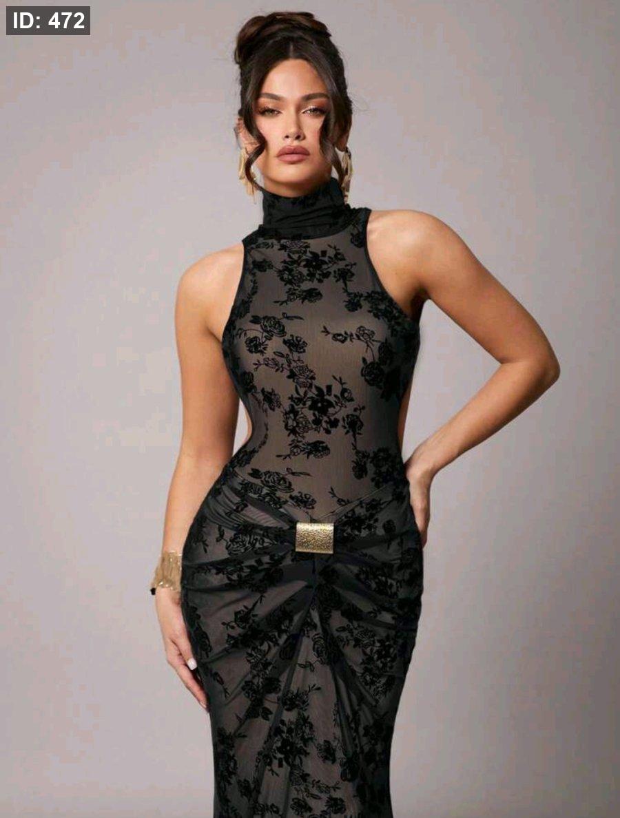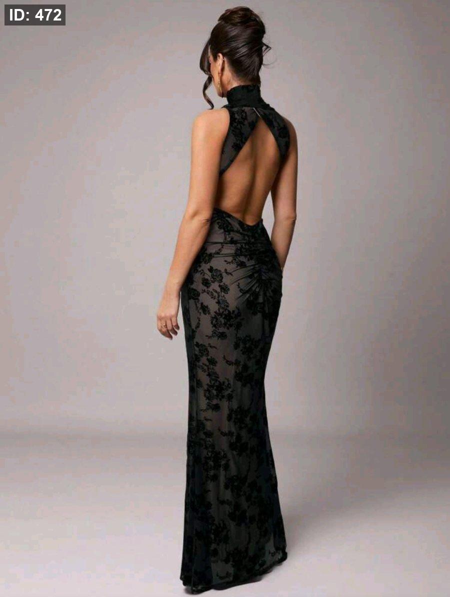Silquee فستان شفاف أسود مزخرف بالأزهار بدون ظهر، أنيق وجذاب، مناسب للخريف/الشتاء، عيد الحب، عيد الميلاد، المواعيد، الحفلات، الزفاف، المناسبات الرسمية