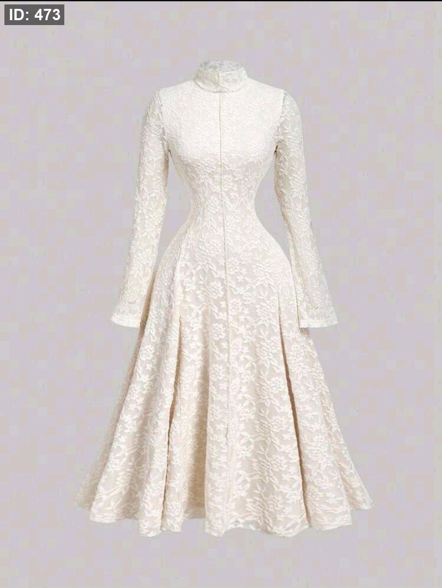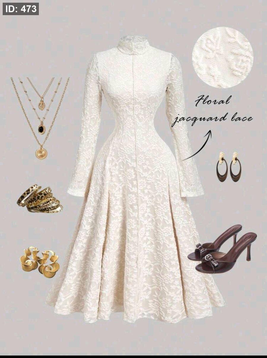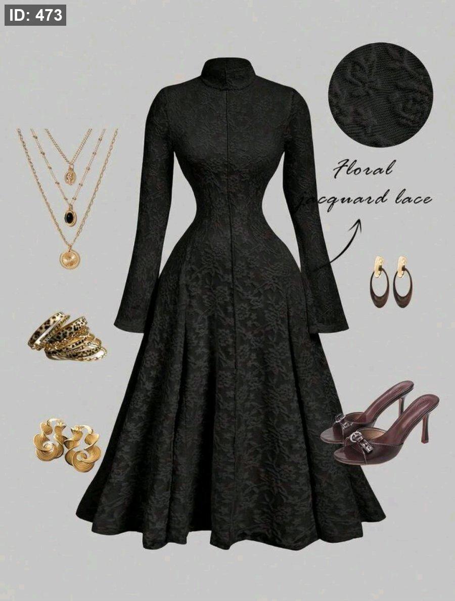 SHEIN MOD فستان أنيق طويل الأكمام بياقة عالية من المرأة الفاخر ذو نقشة جاكارد بلون المشمش - مناسب للمواعيد والحفلات والمناسبات، مناسب لارتداء في رحلات البحر والتخرج والأزياء الهاواي والكرنفالات والفساتين الرقيقة وفساتين السهرة وحفلات الشاي